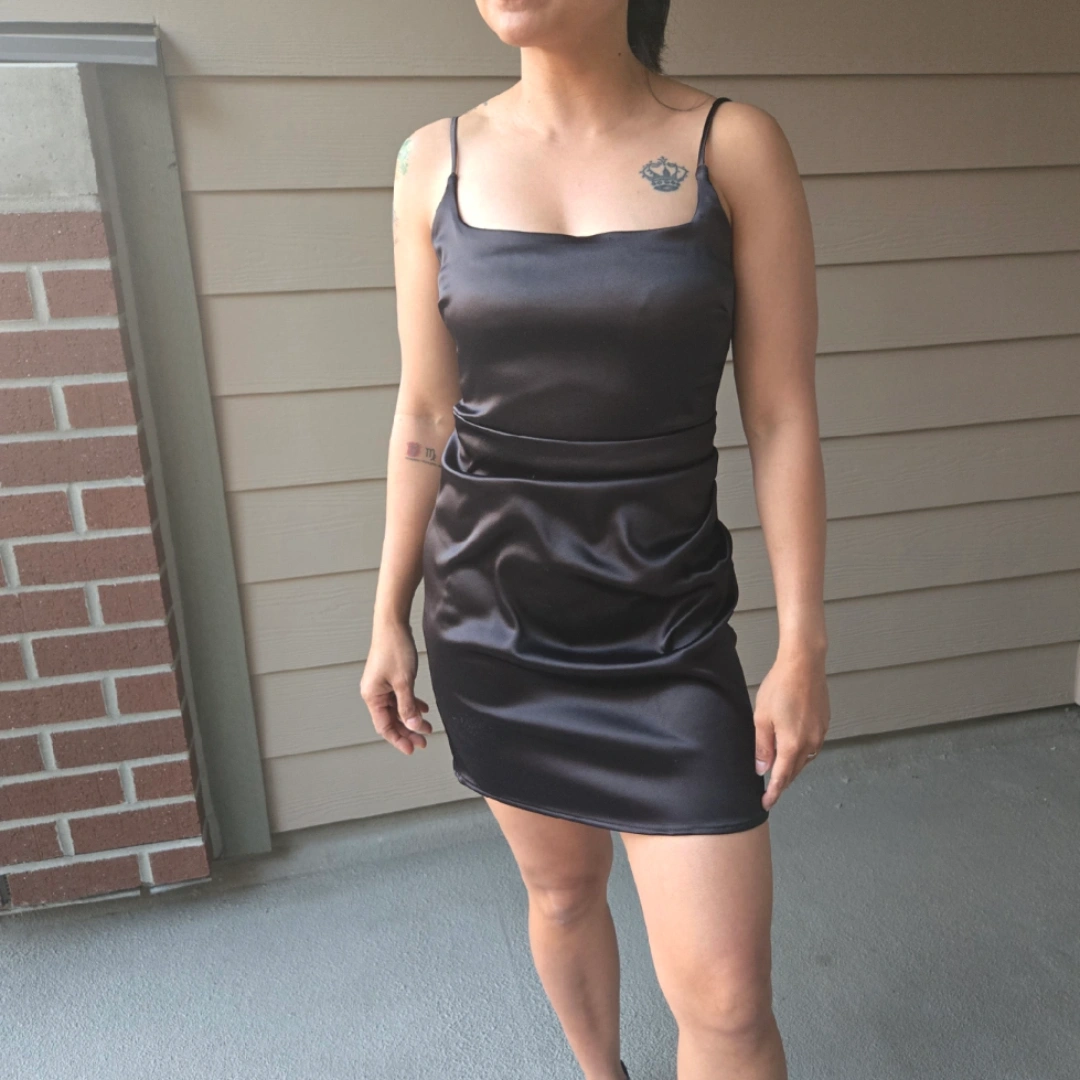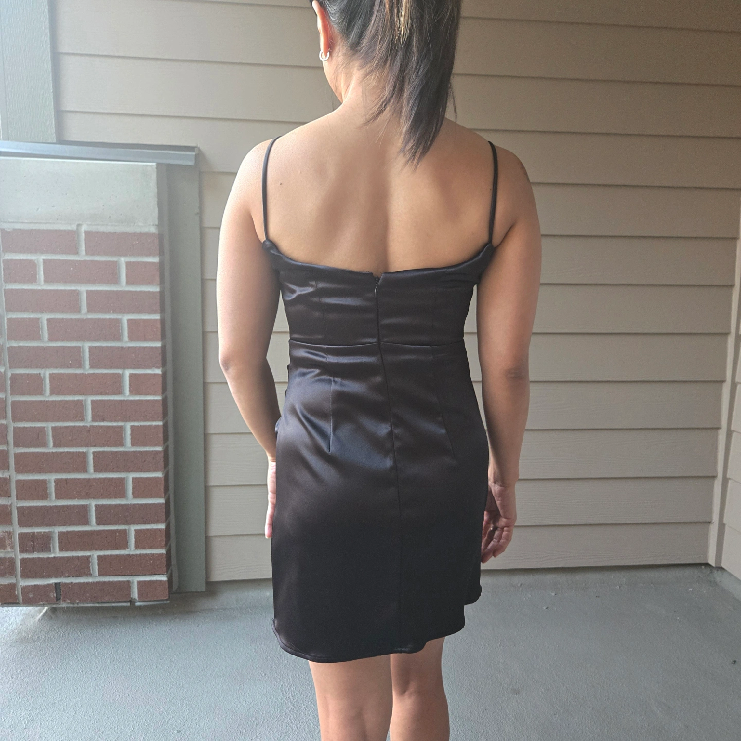 Selling a cute black satin mini dress from Zara! It's perfect for a night out or any special occasion. The dress features a flattering silhouette and comfortable fit. It's in great condition!