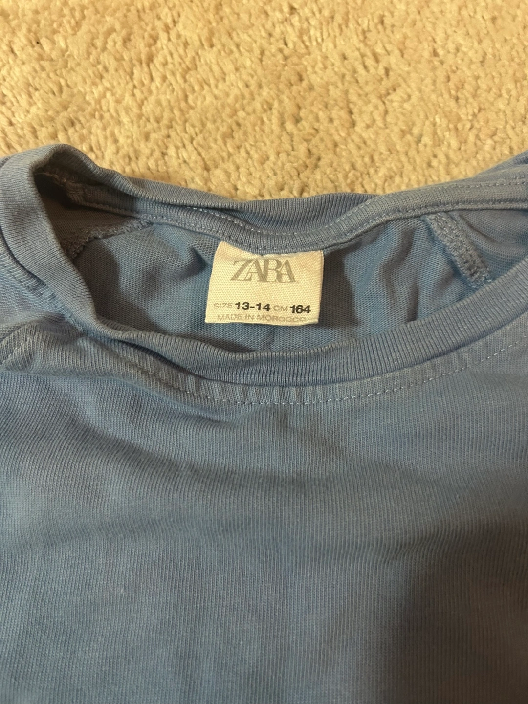 Selling a Zara blue t-shirt in size 13-14 (CM 164). It's in good condition and perfect for everyday wear!