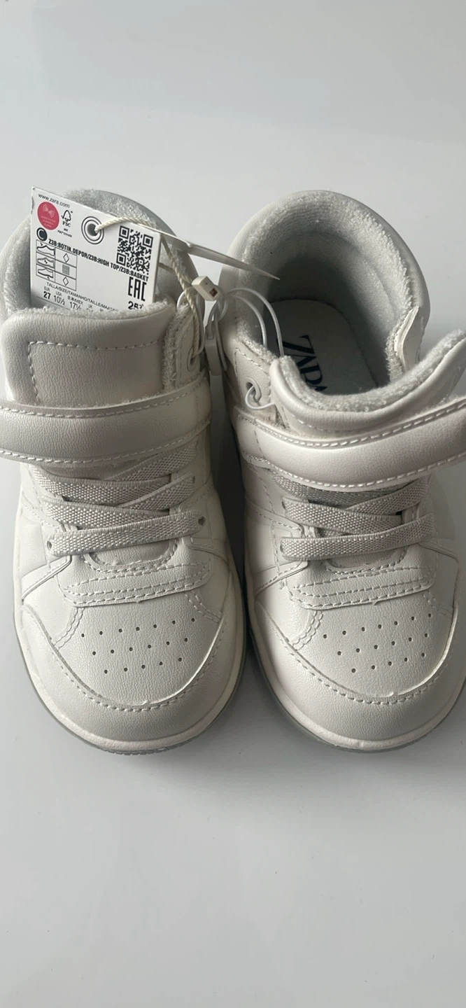 These are a pair of Zara Kids white sneakers, size 10.5 (US). They're in great condition and ready for a new home! Perfect for your little one.