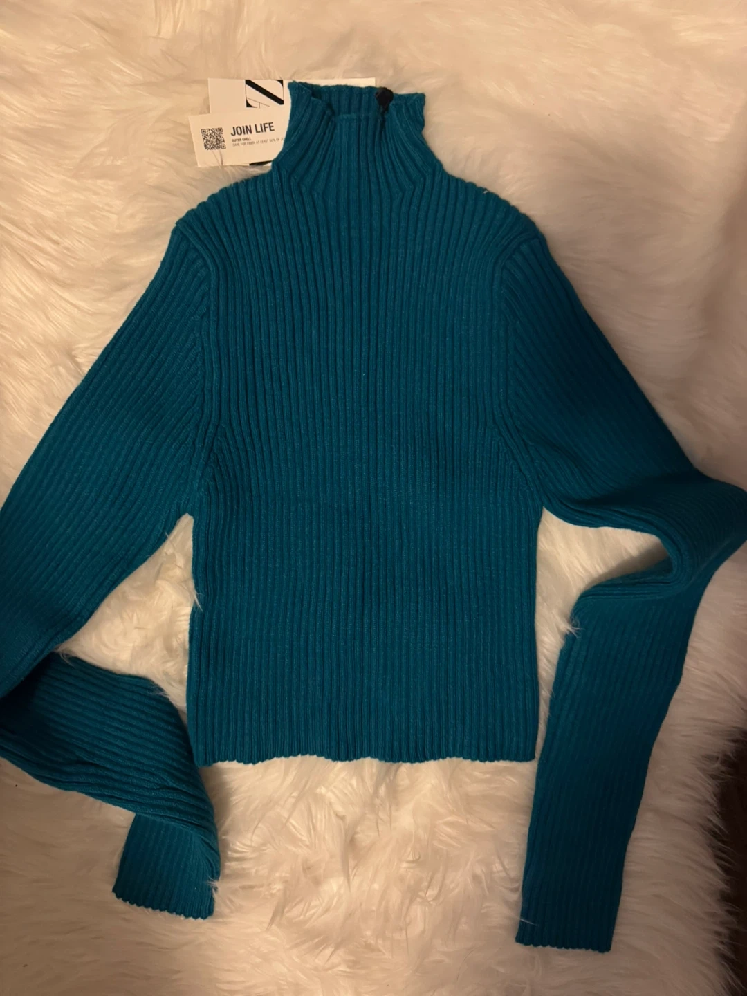Selling a Zara knit top in a beautiful teal colour. It's a size small. Perfect for adding a pop of colour to your wardrobe! Brand new