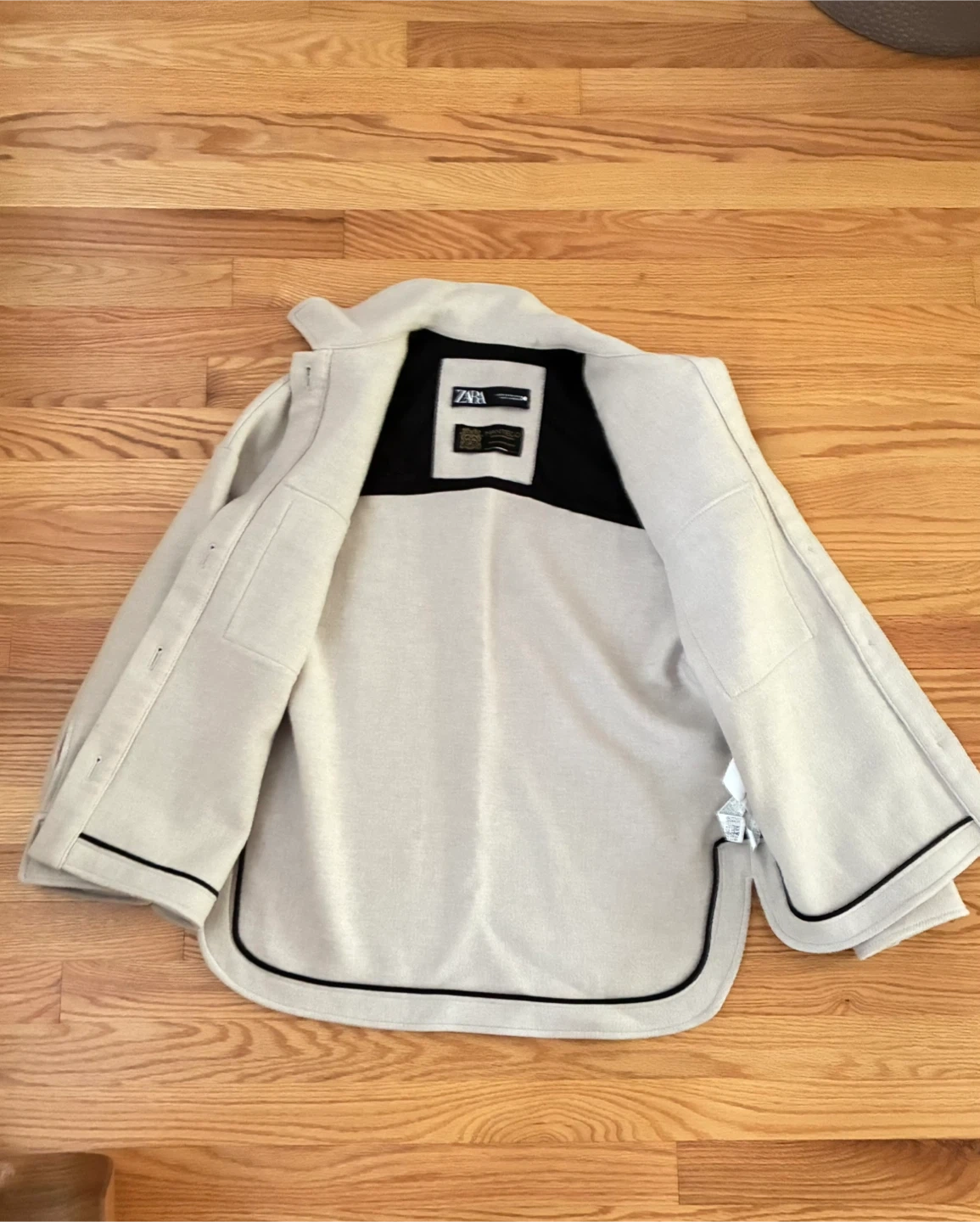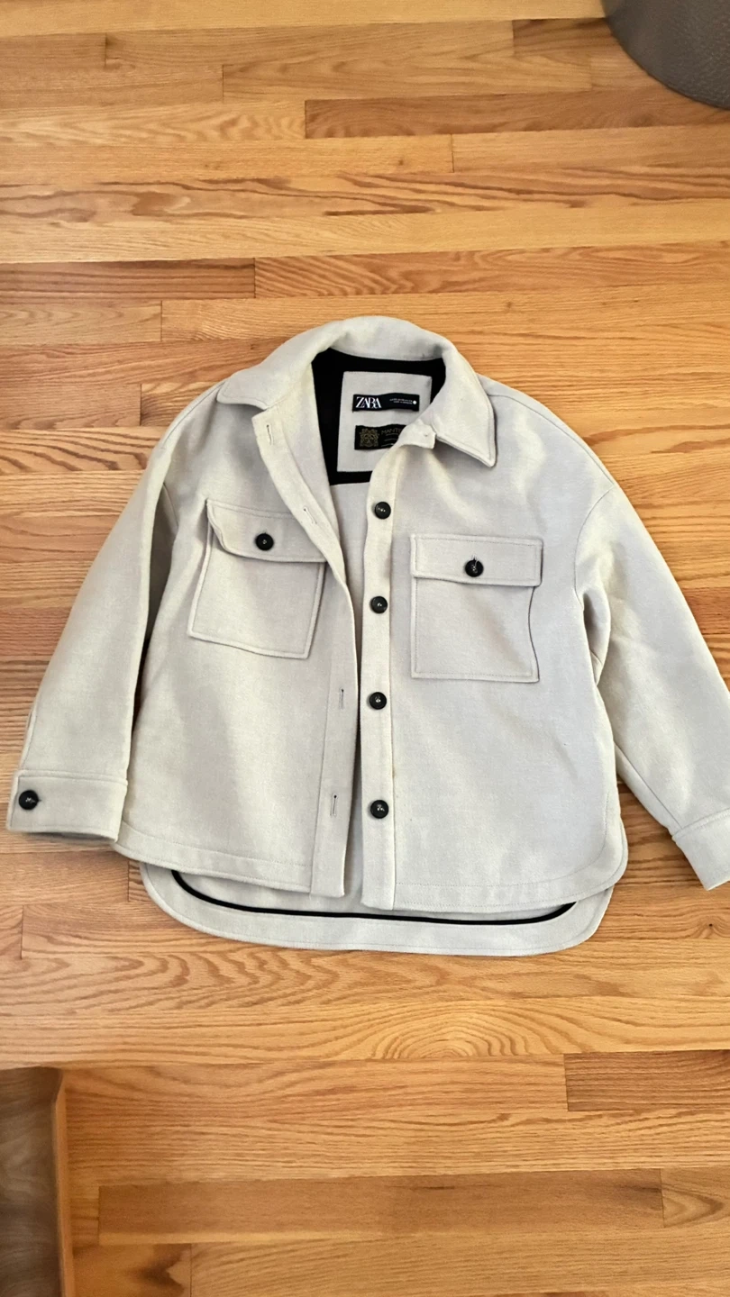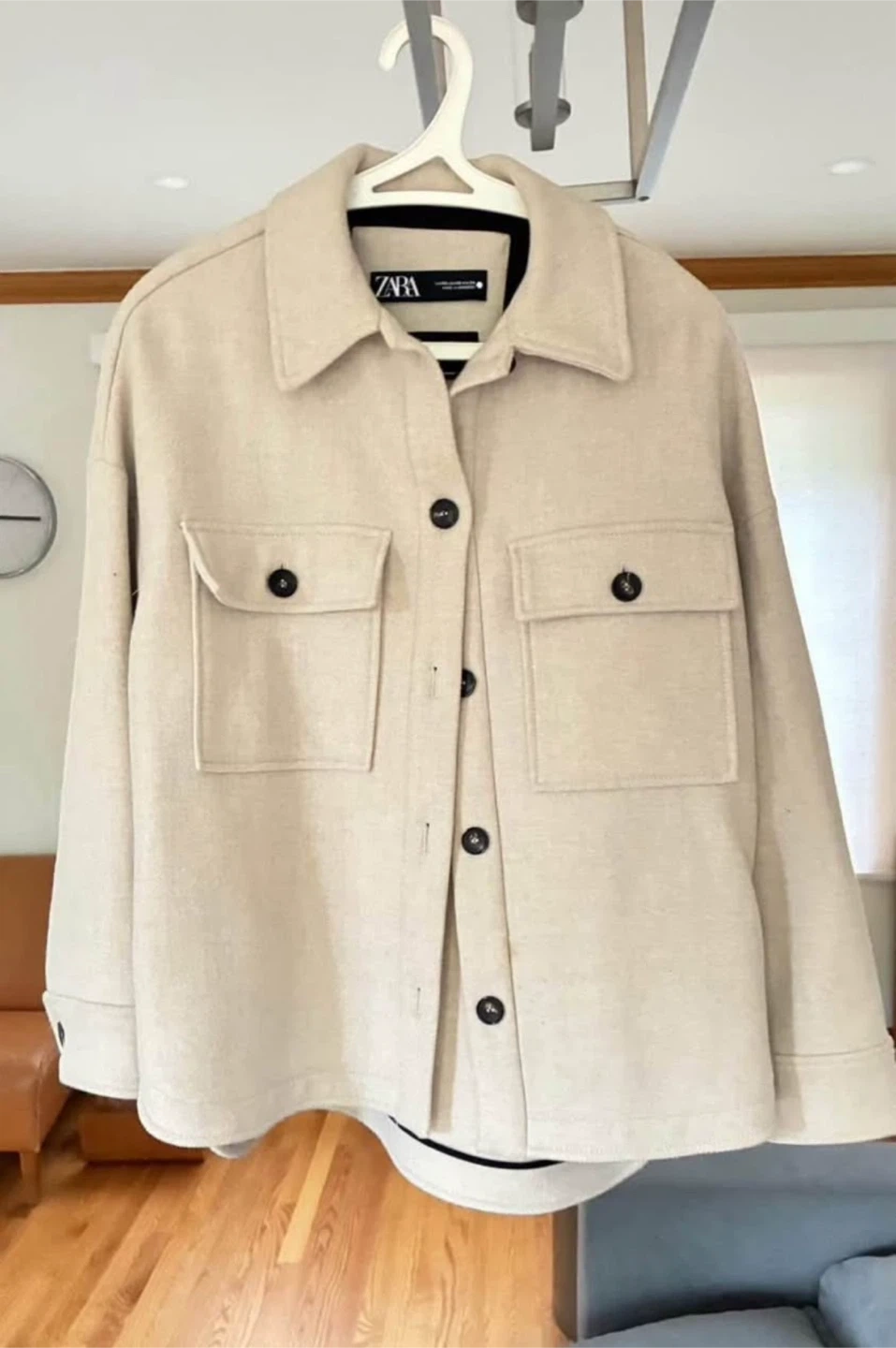 Cozy Zara overshirt in size XS (fits oversized). It's a beautiful neutral colour and very warm. Material: - 66% wool - 31% polyamide - 3% mixed fibers