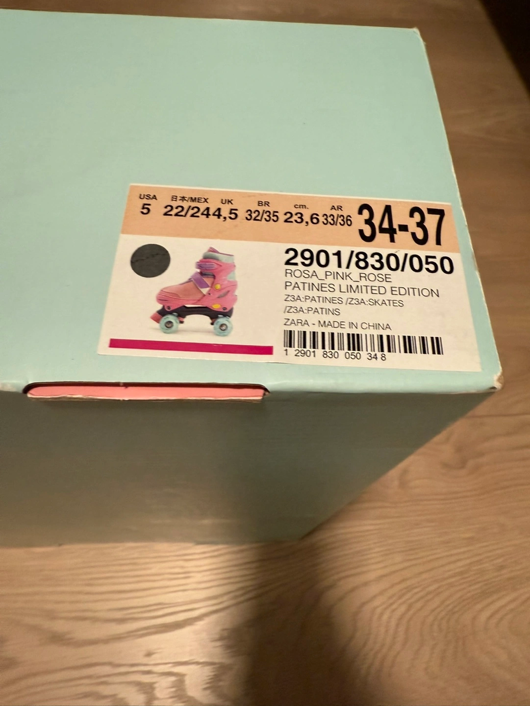 Limited Edition retro style Roller Skates purchased from zara a few years ago. Selling because my daughter outgrew them Adjustable size from size 34 to size 37 Used only a few times and only indoors, no stains no rips and no damage Comes with the box Final price Pick up only