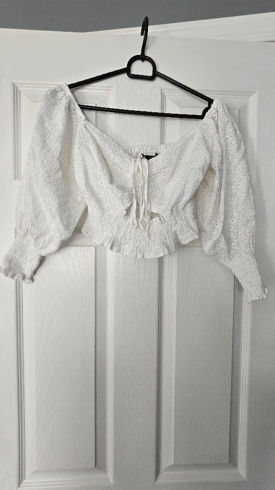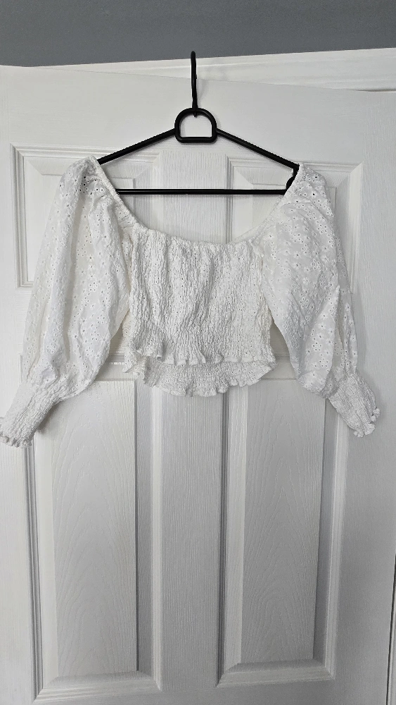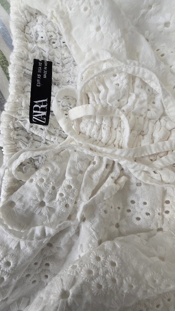 Selling a cute Zara white embroidered crop top in size XS. It is in great condition.