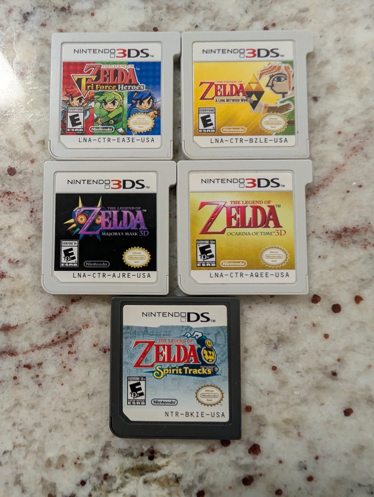 Selling a collection of Legend of Zelda games for the Nintendo 3DS and DS! Included are: - Tri Force Heroes (3DS) $30 - A Link Between Worlds (3DS) $30 - Majora's Mask 3D (3DS) $30 - Ocarina of Time 3D (3DS) $30 - Spirit Tracks (DS) $80 - Phantom Hourglass (DS), complete with the case and instruction booklet $100 Everything has been tested and confirmed working. The full bundle is $300, all prices are OBO, no low ball offers please. will not respond to low ball offers. Located downtown, off of Jasper Ave and 84 Street. Looking to sell as a full bundle Might be able to separate or deliver within the city, depending on the deal. No Shipping, No PayPal.