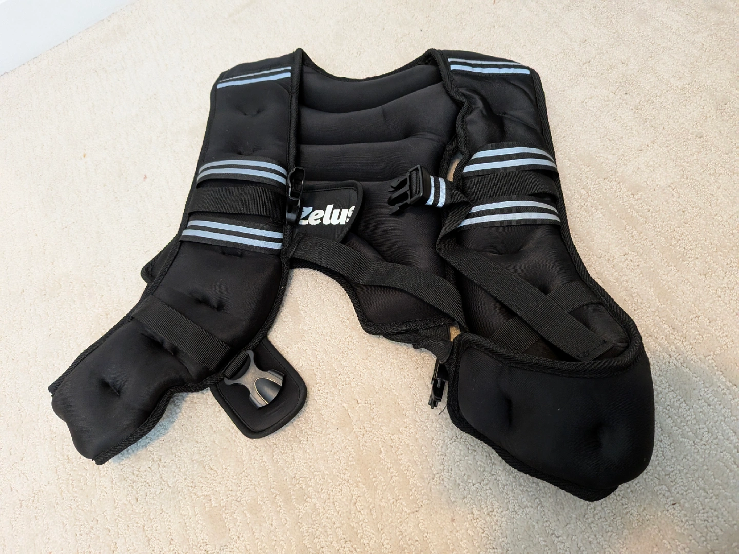 Selling a Zelus weighted vest, it weighs 13.7 lbs. Great for adding resistance to your workouts!