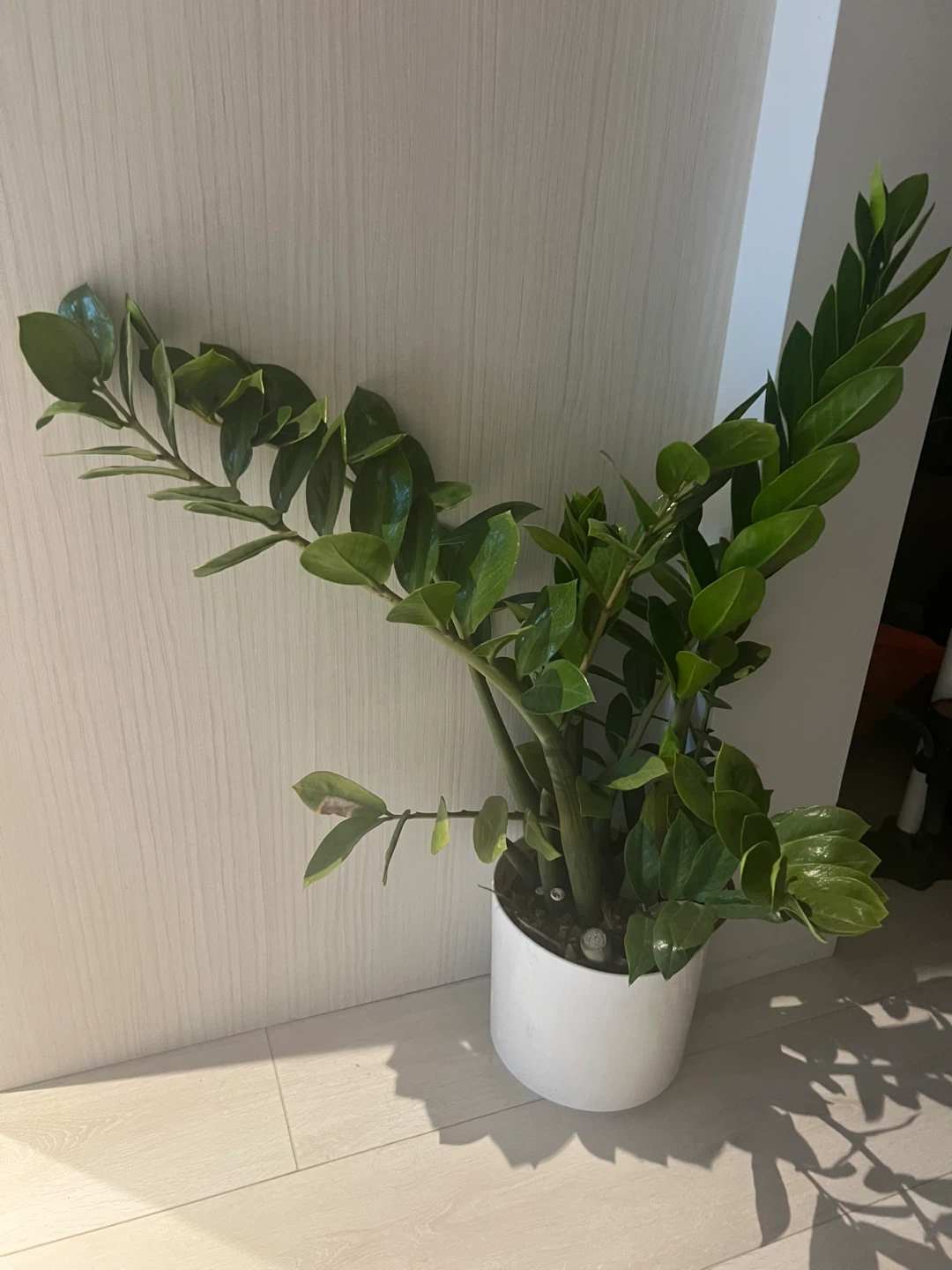 Selling a healthy ZZ plant in a white pot! It's a great low-maintenance plant that's perfect for adding a touch of greenery to any room