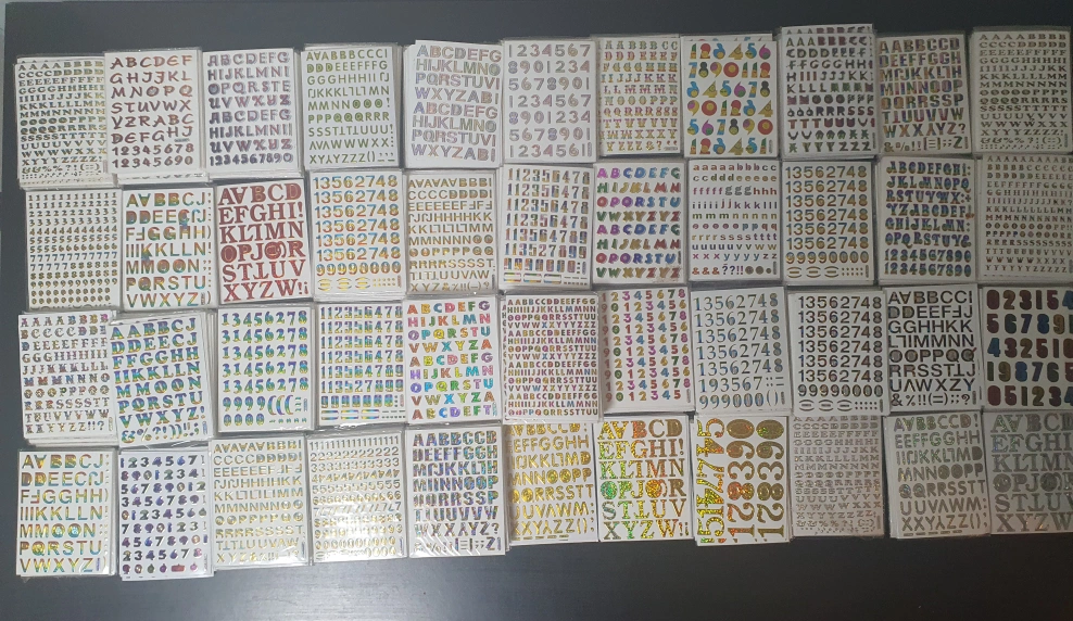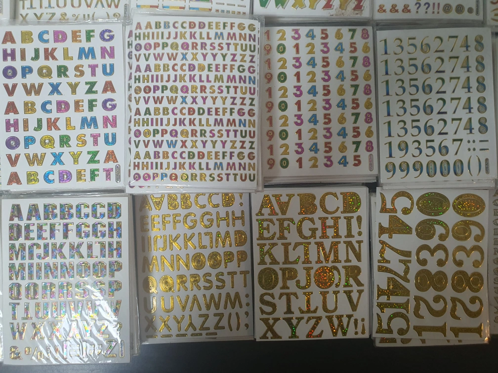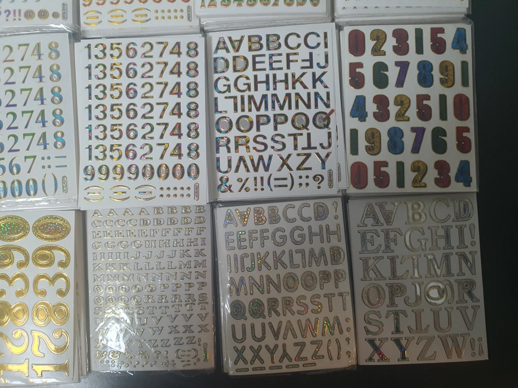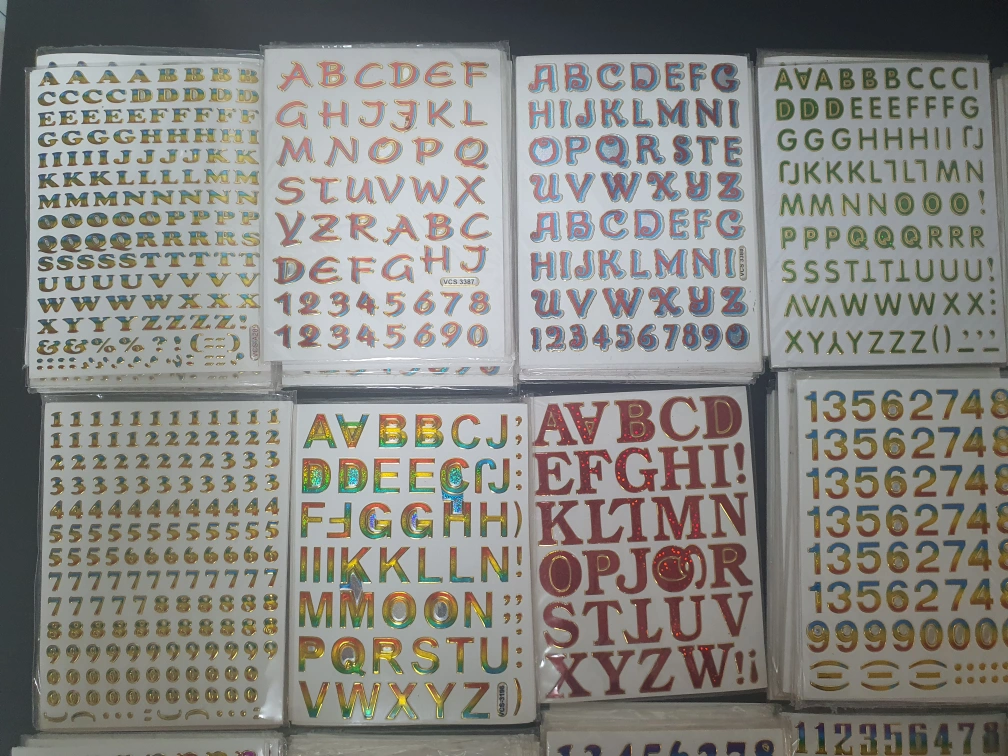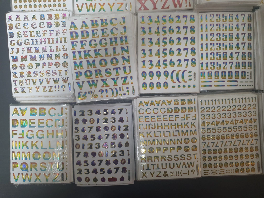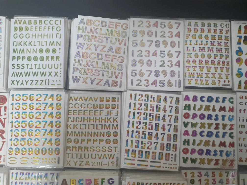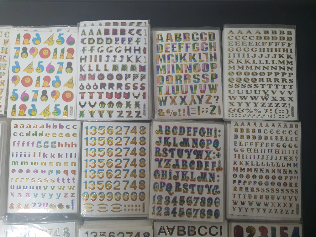 44 sheets of alphabet letter number stickers (13 cm X 10 cm) I am closing my sticker business ~~ I have thousands of stickers and patches available / Characters and other ~~ Characters: Pokemon (Pikachu) / Care Bears / Sponge Bob SquarePants / Smurfs / Mickey Mouse / Minnie Mouse / Hello Kitty / My Melody / Nemo / Spiderman / Batman / Super Man / Star Wars / Incredibles / Anpang Man (Bread Man) / Winnie the Pooh / Tellie Tubbies / Aristocats / Bratz Dolls / Barbie / Thomas the Train / Sponge Bob Square Pants / Nightmare Nightmare Before Christmas / Doraemon / Simpsons / South Park / Garfield / Scooby-Doo / Flintstones / Super Mario / Dora the Explorer / Tweety Bird / Power Puff Girls / South Park / Pink Panther / Felix the Cat / Casper / Goku (Dragon Ball) / Naruto / Transformers / Snow White / Snoopy / and so so many more... Generic Stickers: Hearts / Stars / Animals (so many animals...) / Letters / Numbers / Food / and so so many more... Please contact me for more information ~~ Wholesale prices available for multiple quantities ~~ Pick up in Bogwang-Dong (between Itaewon and Hannam stations) 택배는 착불 입니다 반값택배는 택배비 포함 10000원 이상 구매 가능합니다