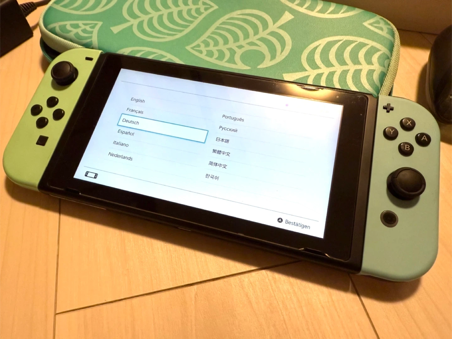 あたたかさニンテンドースイッチ あつまれどうぶつの森 editionです。 【情報】 ブランド:ニンテンドー 商品:スイッチ本体 あつまれどうぶつの森デザイン カラー:グリーン、ホワイト 本体初期化済み 【状態】 小さな割れあり(写真参照) 使用感少なめ ジョイコン右のRボタンが反応しません。 普段使いには良いかと思いますが、この点ご了承ください。 ペット喫煙なし 日焼けの変色なし 初期化しているためソフトはありません。 【付属品】 箱、充電器、ケース、ボクシング用のグリップ、その他付属品あり(写真参照) 中古品であることご了承ください。 大倉山駅、菊名駅、新横浜駅でのお渡しも可能です。 9/25値下げしましたー。 もし大倉山の近くまで取りに来ていただけるなら、上記の他に、スプラトゥーンカラーのコントローラーもお渡しします。こちらは傷もほとんどなく、ボタンスティックに異常ないです。本体のコントローラーと交換すれば十分に遊べます。