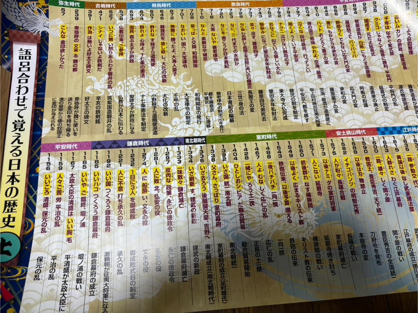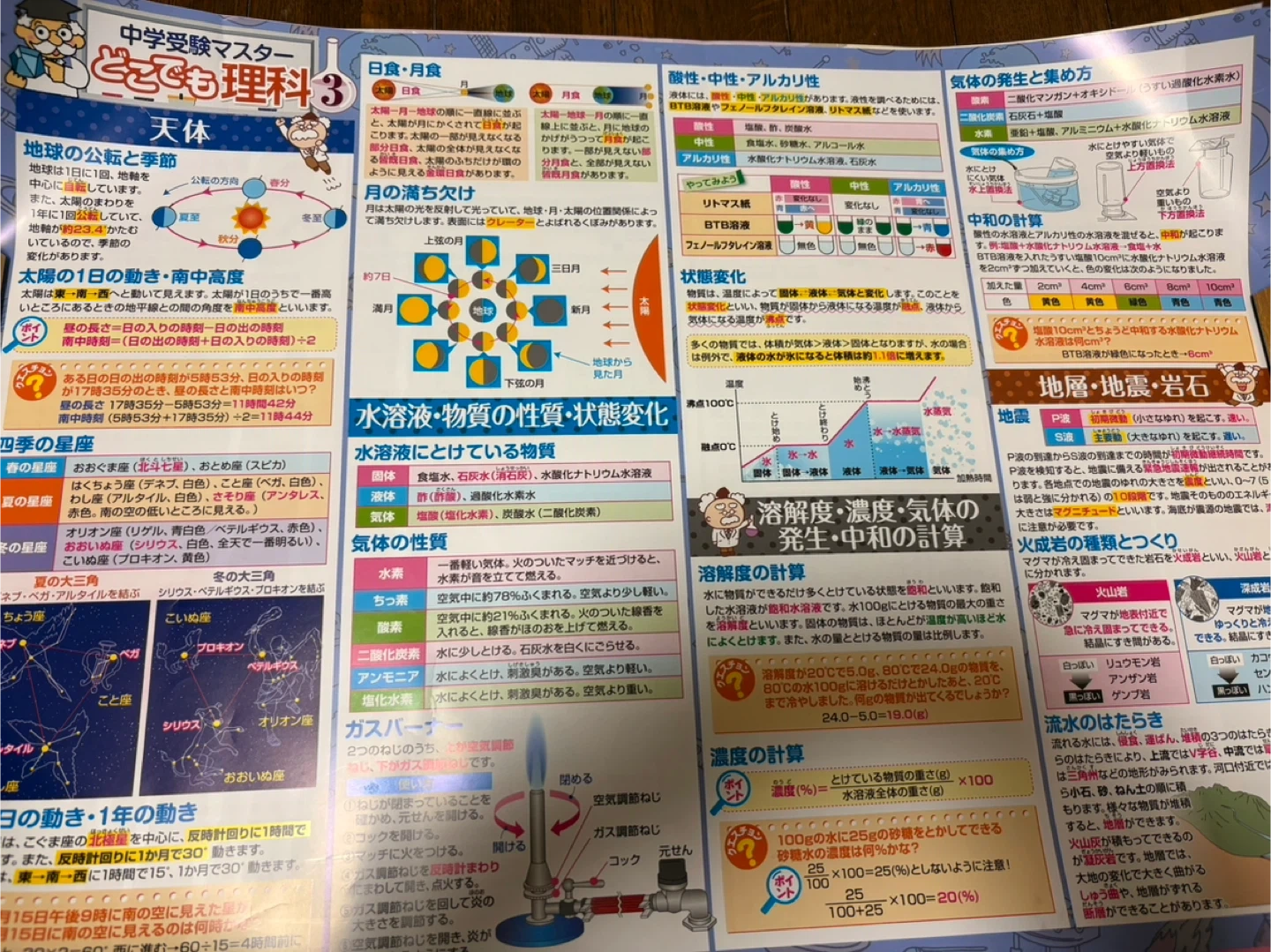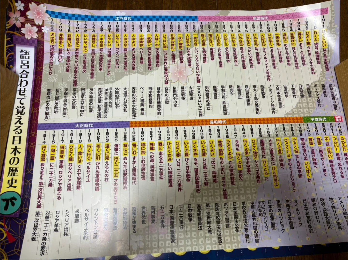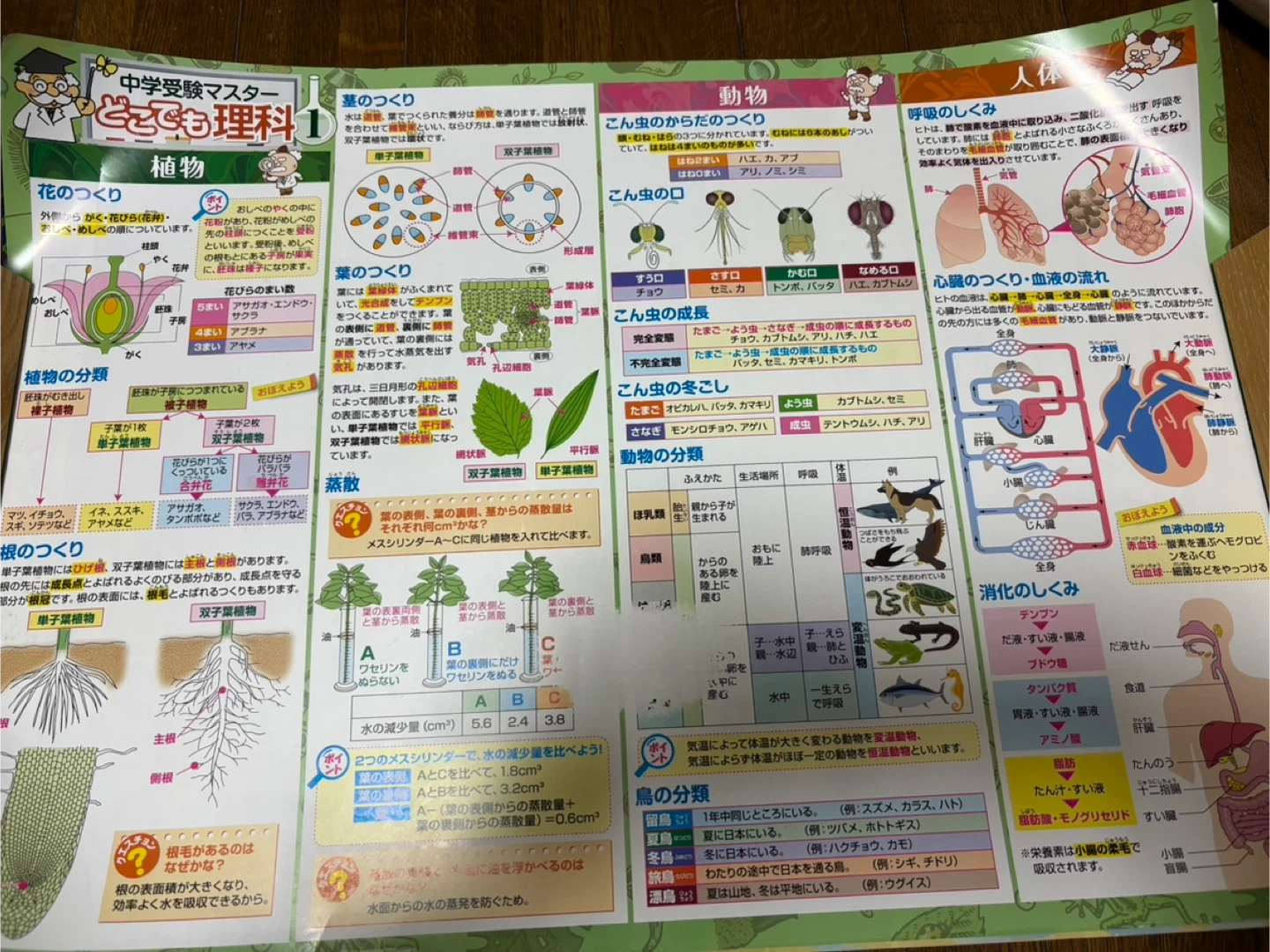 中学受験の理科、歴史の暗記に役立つポスターです。 裏面を濡らしてお風呂に貼れます。 自宅で貼って使用しましたが、本人的には以外に役立ったようです。 拭き取りと消毒済。汚れも見当たらなくてきれいかと思うので、暗記用の教材にいかがですか? ※おまけの日本地図は低学年向けです。 ご不明点があればお気軽にご連絡ください