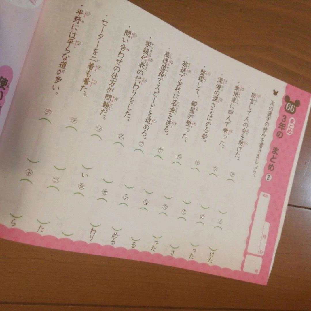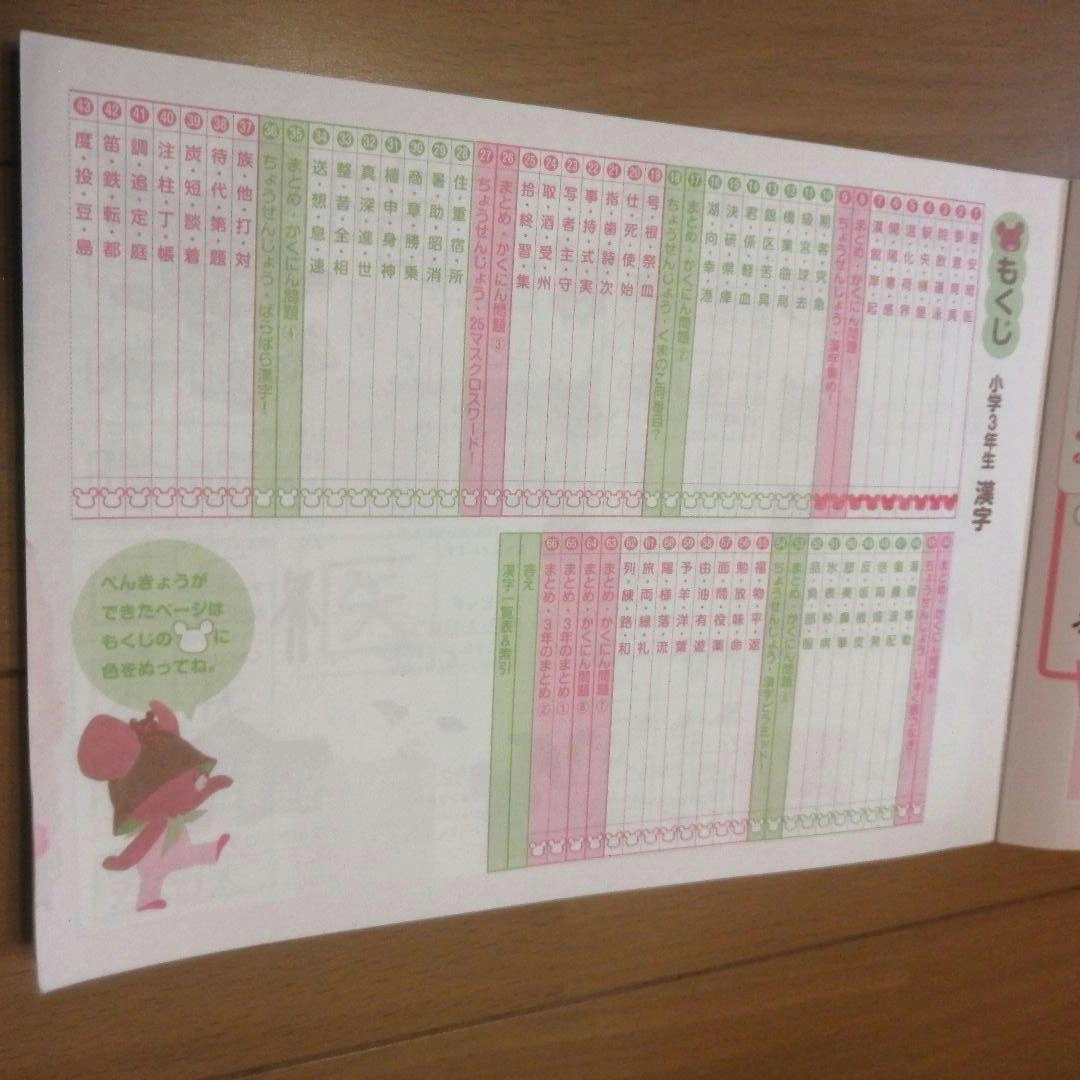 ご覧いただきありがとうございます。 【くまのがっこう漢字ドリル〜小学3年生】です。 定価880円。 全116ページのうち前半の17ページほど書き込みがあります。途中から進研ゼミへ移行したため後半は未使用です。全部で『66』までの単元があり、『10』単元の途中までは書き込みがあります。 なお『10』の後半は書き込みが少なかったので消しゴムで消してあります。 ※書き込みのは写真5、消しましたページは写真6をご参照くださいm(_ _)m くまのがっこう可愛いイラストとともに、3年生の漢字の復習にいかがでしょうか。約100ページ分は未使用ですが、シミや書き込みがあるのでお安く出品させていただきましたm(_ _)m 机の本棚で保管していました。あくまで中古品になりますので、ご理解のうえ画像をご確認いただき、画像をご確認いただき、ご検討下さい(*^_^*)こちらの商品は即購入していただいて構いません。 ご希望の方はお気軽にご連絡ください。