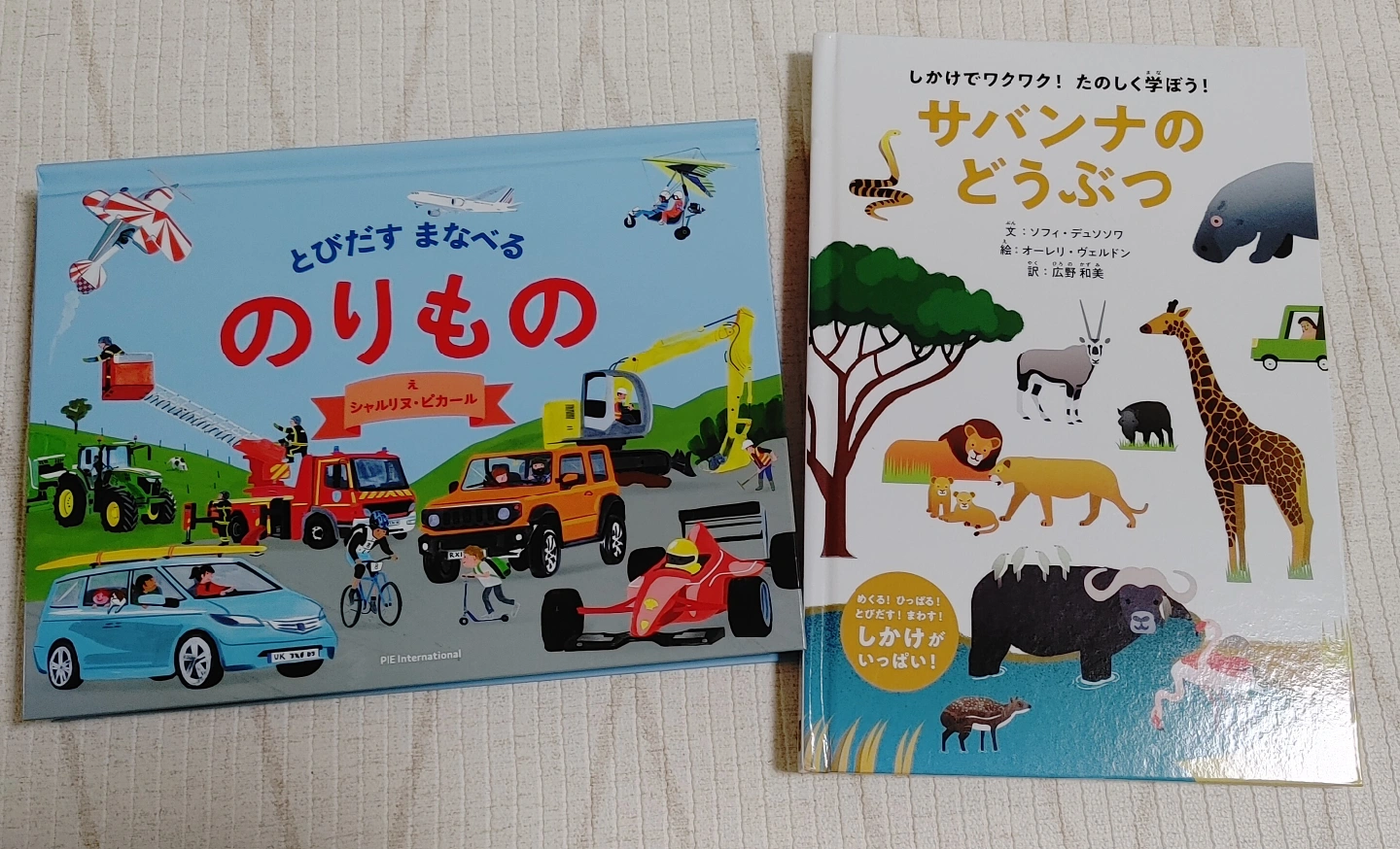 しかけ図鑑2冊セット 作者は海外の作家さんです。 【のりもの】 立てて見ていただくと、奥行きのある構造になっています✨ たくさんの乗り物が載っています! 【サバンナのどうぶつ】 ひっぱったり、めくったり楽しめる図鑑 動物の名前はカタカナと英語表記の2種です。一部、折れてしまったところが ありますが他は綺麗な状態です。 家庭で使用していたものですので、ご理解ある方よろしくお願いいたします✨ 取引可能時間 平日朝9~10時頃または14~18時頃 休日も可能です☺️ 場所や時間などご相談ください!