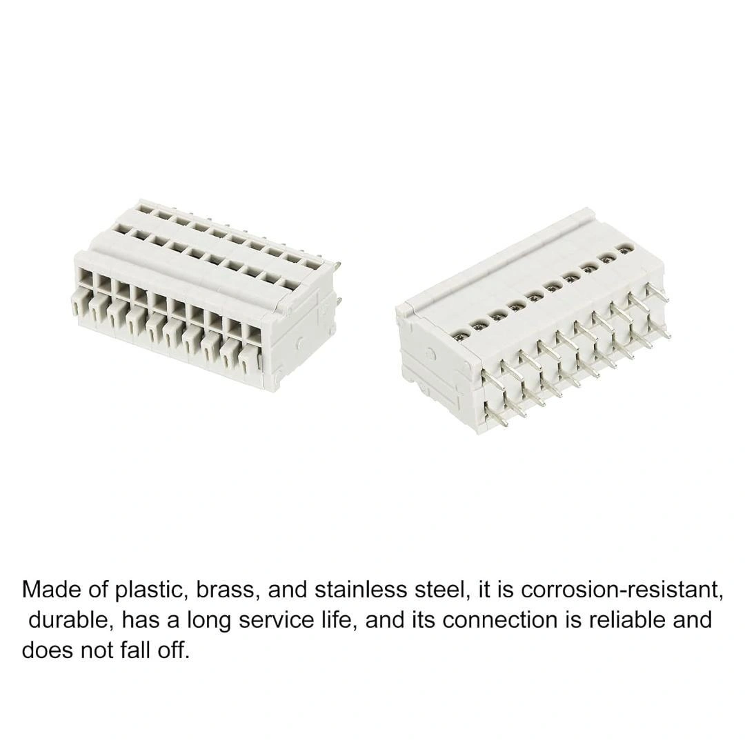 モデル: KF141AV; カラー: グレー; 定格電圧: 150V; 定格電流: 2A; ピッチ: 2.5 mm; 合計サイズ: 19.5 x 27 x 10 mm(LxWxH). ばね端子ブロックは、デバイスと外部ワイヤを接続して、電気信号を送信し、電気を伝導します。電子機器、通信機器、計装、電卓、コンピューター、自動制御システム、家電製品、警報装置などで広く使用されています。 プラスチックと銅で作られており、腐食に強く、高温に強く、耐久性があり、長寿命で、接続は信頼性が高く、脱落しません。 取り付けと取り外しが簡単です。回路基板の接続穴にピンを差し込むことで端子を固定でき、端子の回路を回路基板の回路に接続することもできます。 適用線径範囲にご注意ください。
