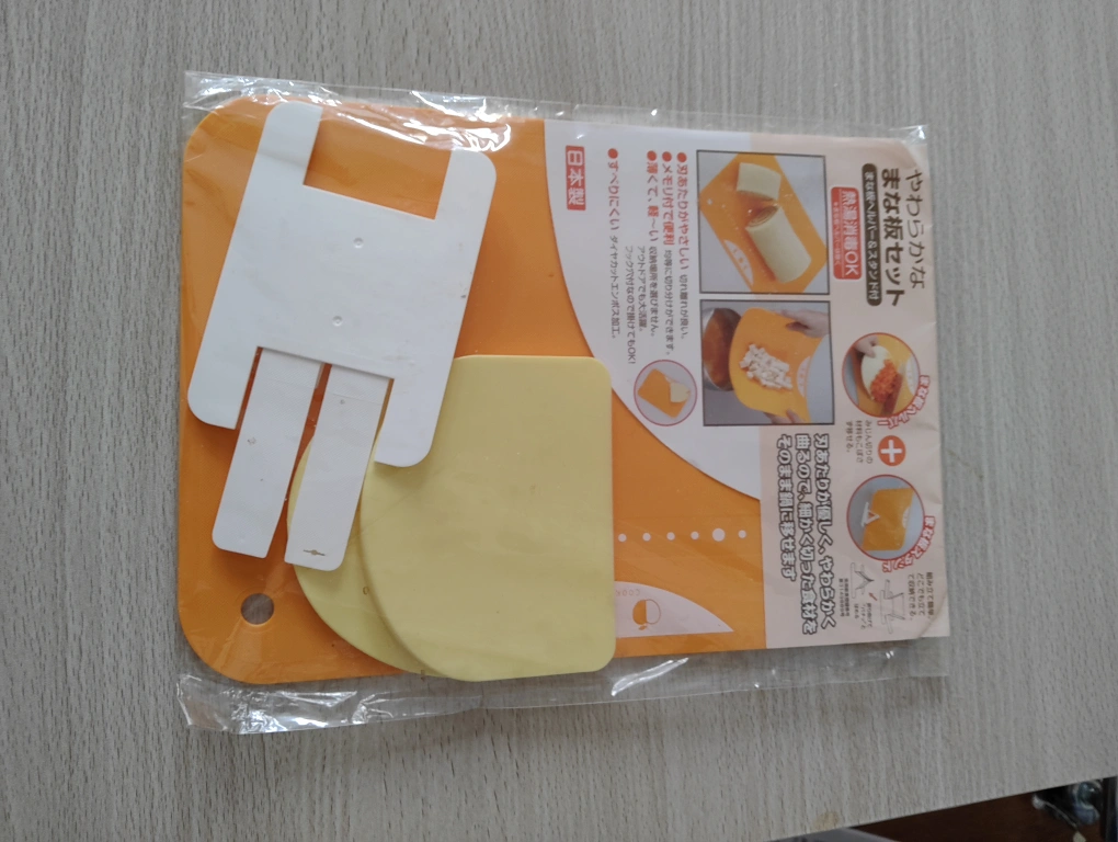 やわらかなまな板セットです ・まな板ヘルパー&スタンド付き ・カラー:オレンジ、イエロー、ホワイト ・熱湯消毒OK ・日本製 中古品であることご了承ください