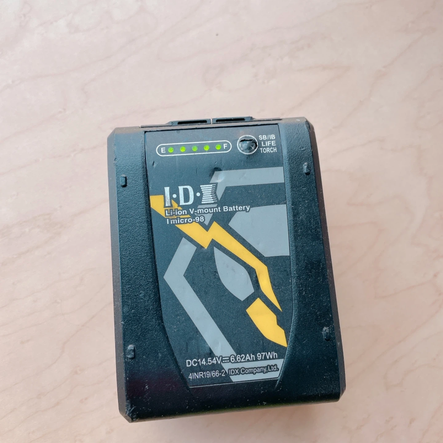 アイ・ディーのVマウントバッテリーです 【情報】 ブランド:アイ・ディー 製品名:Li-ion V-mount Battery 1micro-98 電圧:DC14.54V 容量:6.62Ah 97Wh 【状態】 使用感あり 中古品であることご了承ください