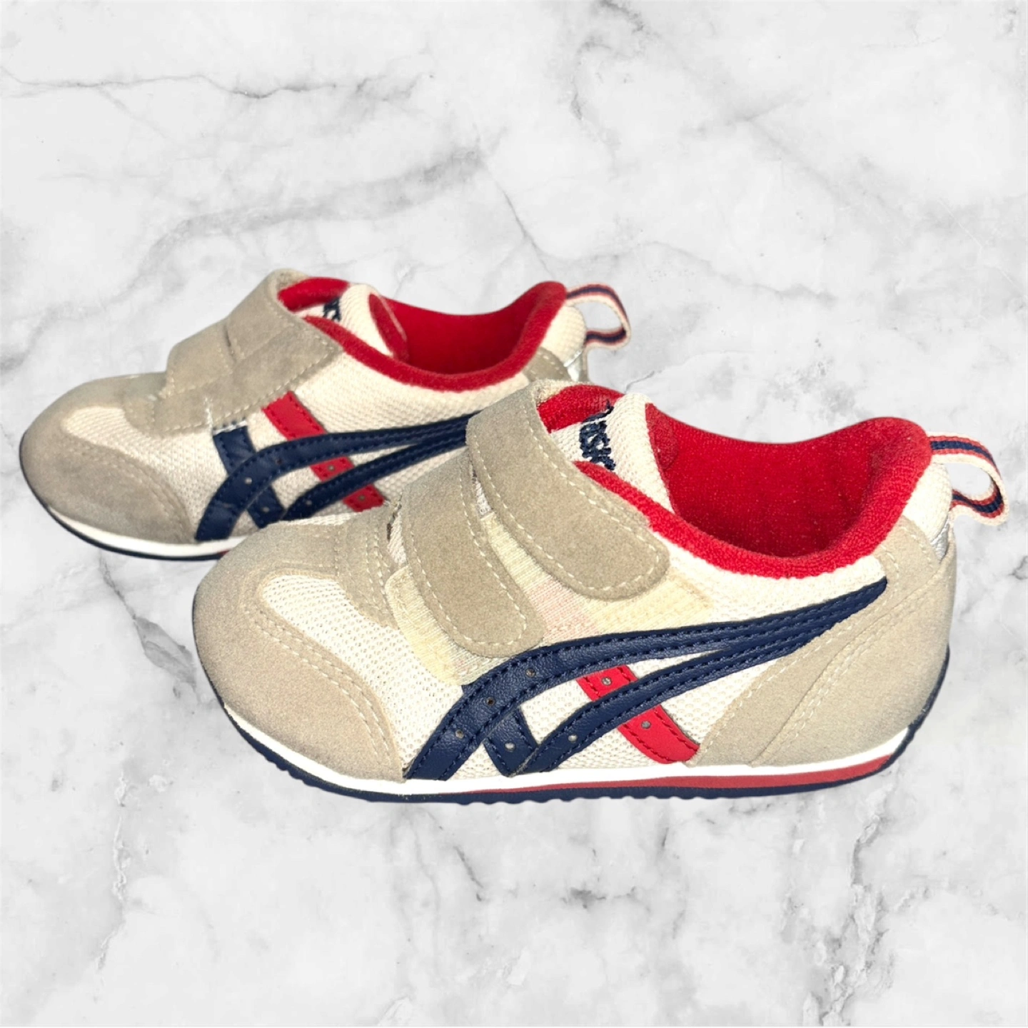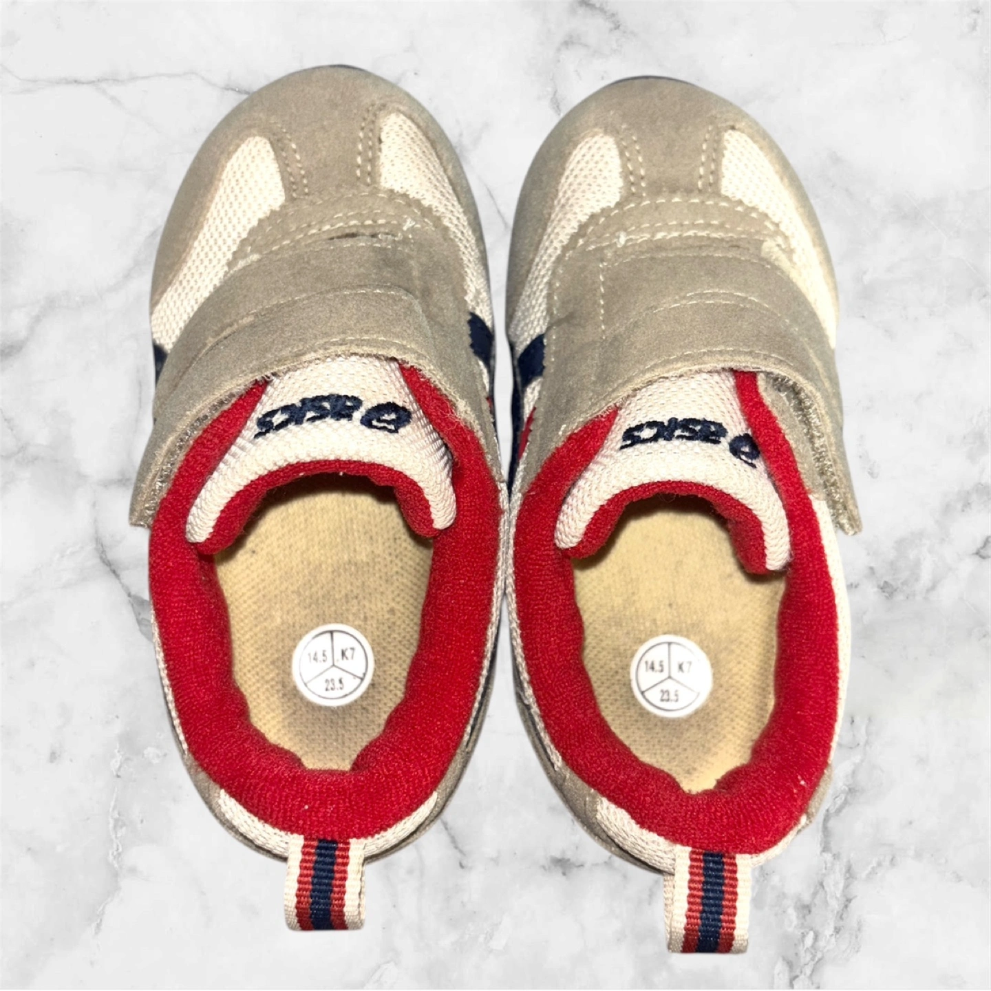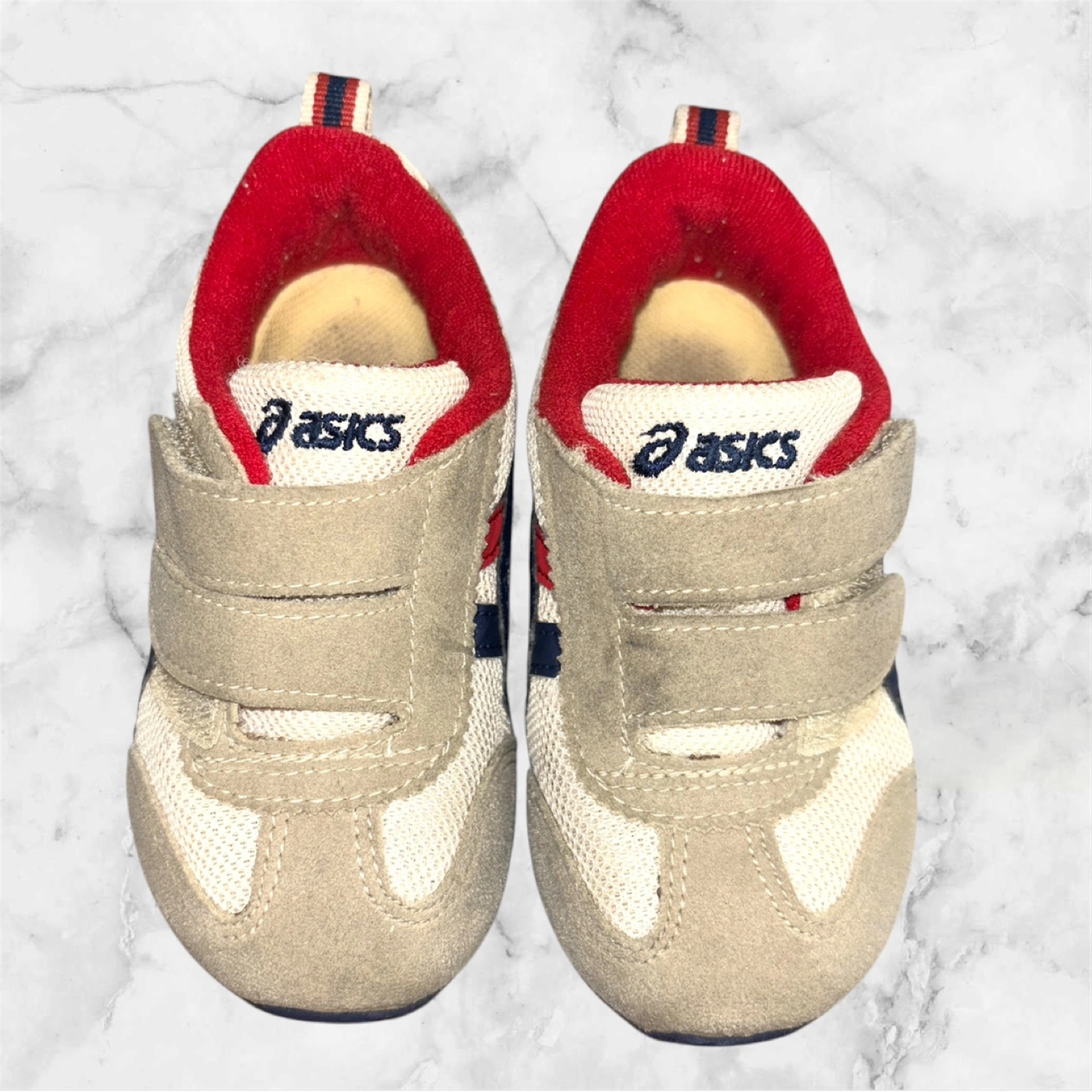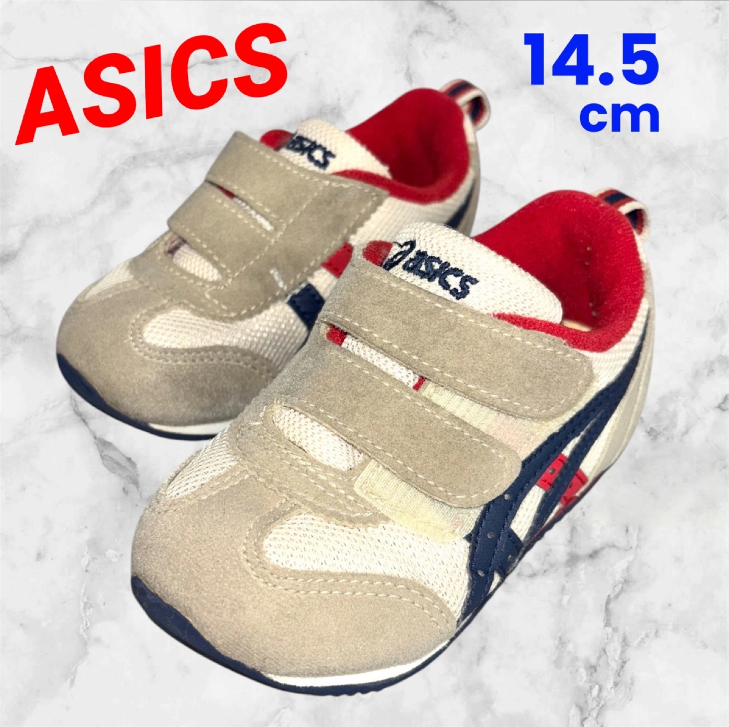 ASICSのマジックテープ付きベビーシューズ 軽量で快適なデザイン。 ☆サイズ…14.5cm ☆カラー…ベージュ/レッド/ネイビー ☆デザイン…マジックテープ式 ☆素材…スエード/メッシュ 子供が履いていた中古になります 多少の汚れ等はありますが、破れ等はないので、まだまだ履いていただけます 他サイトでも出品中です。 他で売れた場合、急に削除しますので、ご了承ください