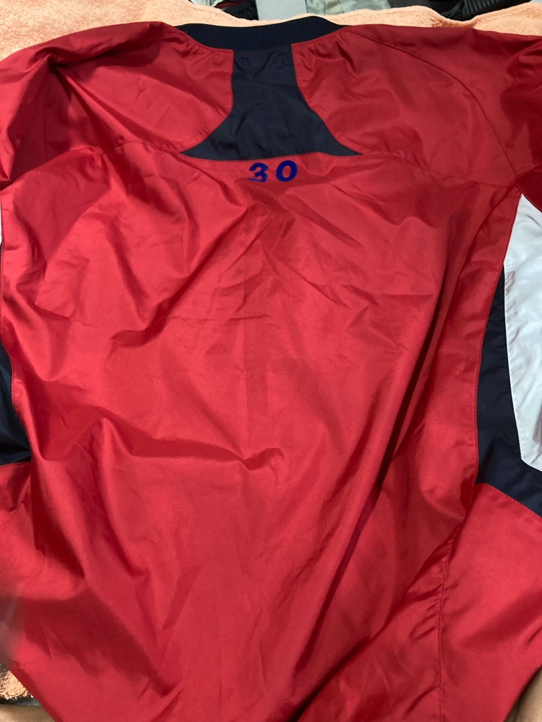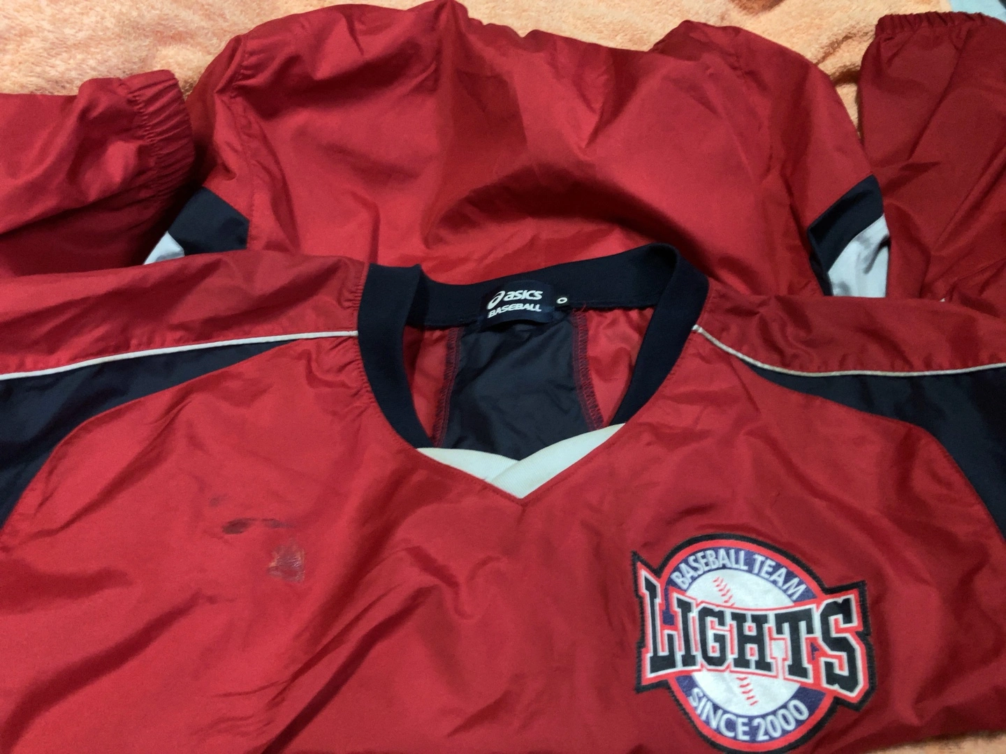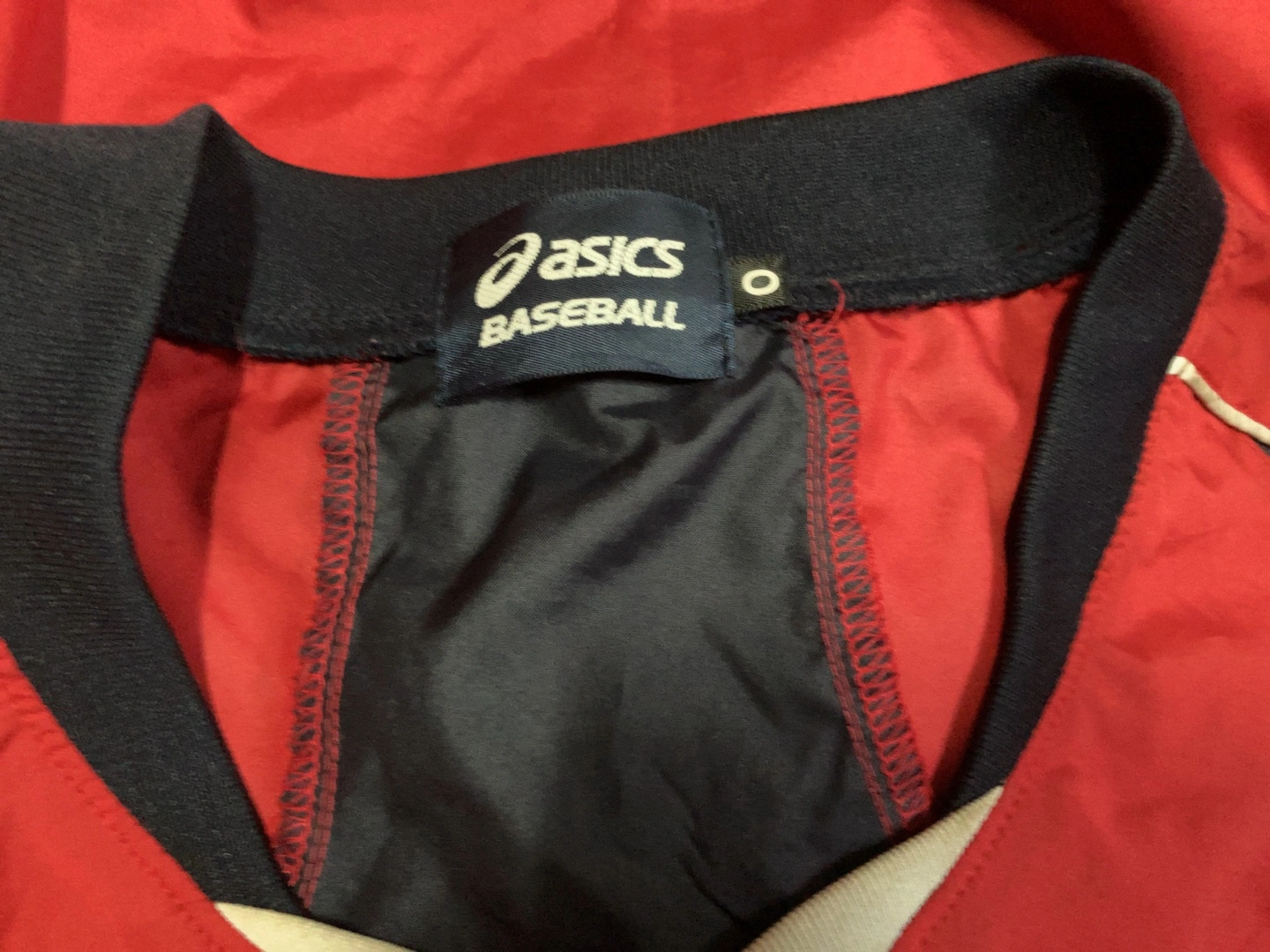 ・ブランド:アシックス ・商品:ベースボールジャンパー ・カラー:レッド、ネイビー、ホワイト ・サイズ:O(胸囲97-103cm、身長177-183cm) ・素材:ポリエステル100% ・胸にロゴあり ・背番号:30すぐに剥がせます。 胸にシール剥がし跡有り。