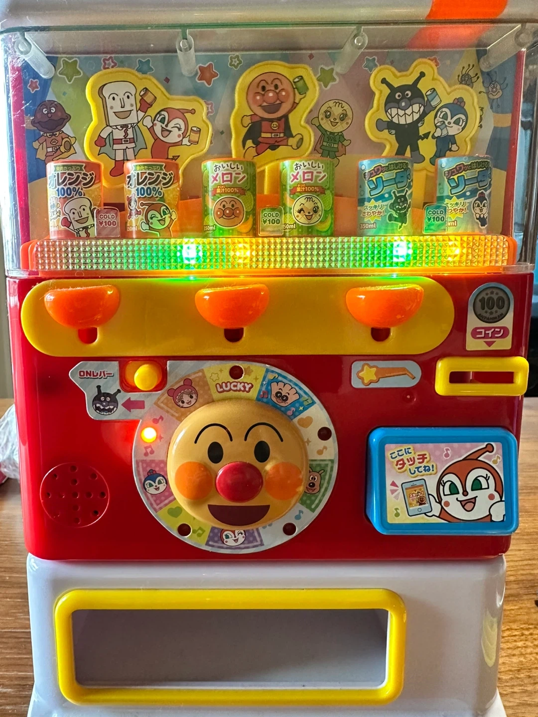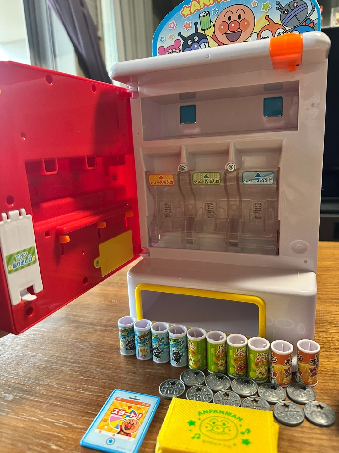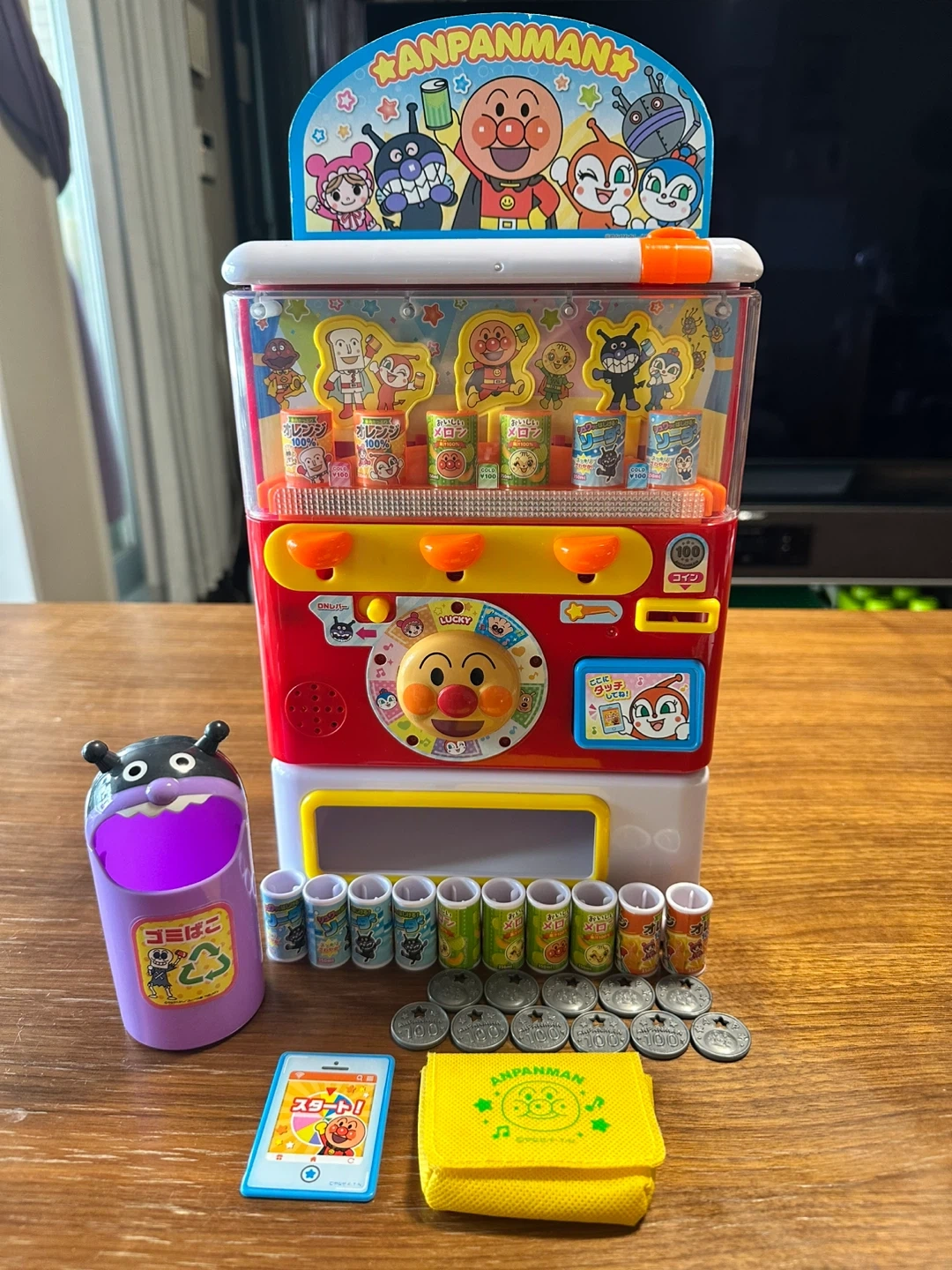 アンパンマンのジュースちょうだい キラピカイルミネーションDX 自動販売機 【商品詳細】 本物みたいに遊べる自動販売機♪ コインを入れてジュースを買うと「アンパンマンのマーチ」のメロディに合わせてイルミネーションがピカピカ光ります。ジュースがなくなったら補充して繰り返し遊ぶ事ができます。 コインやカードはお財布に収納 空き缶はゴミ箱に捨ててマナーも学べます! ●箱無し ●写真の備品が全てです (お渡しまでにオレンジジュースが見つかれば追加で付属いたします) ●動作確認済 ●電池なし(単3電池2本) ご覧いただきありがとうございます。 中古品であることご了承ください。 よろしくお願いいたします^ ^