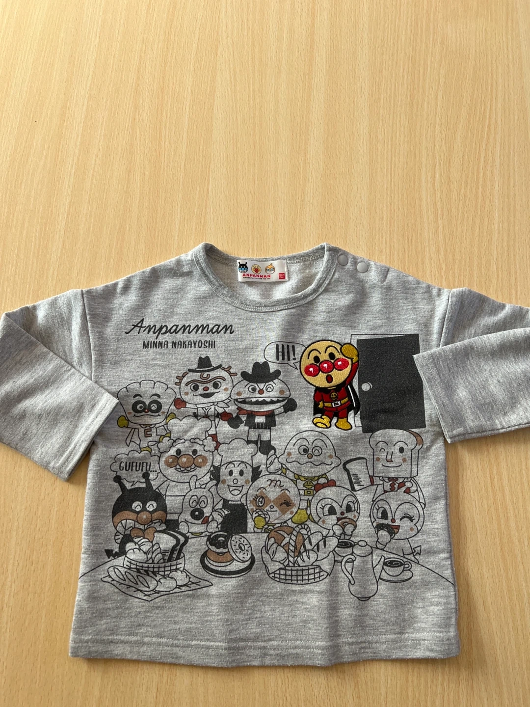 アンパンマンの長袖Tシャツです。 ・色:グレー ・プリント柄:アンパンマン ・使用感少なめ 娘が数回着用したものになります ※タグに記名ありでマジックで  消してあります ご不明点があればお気軽にご連絡ください