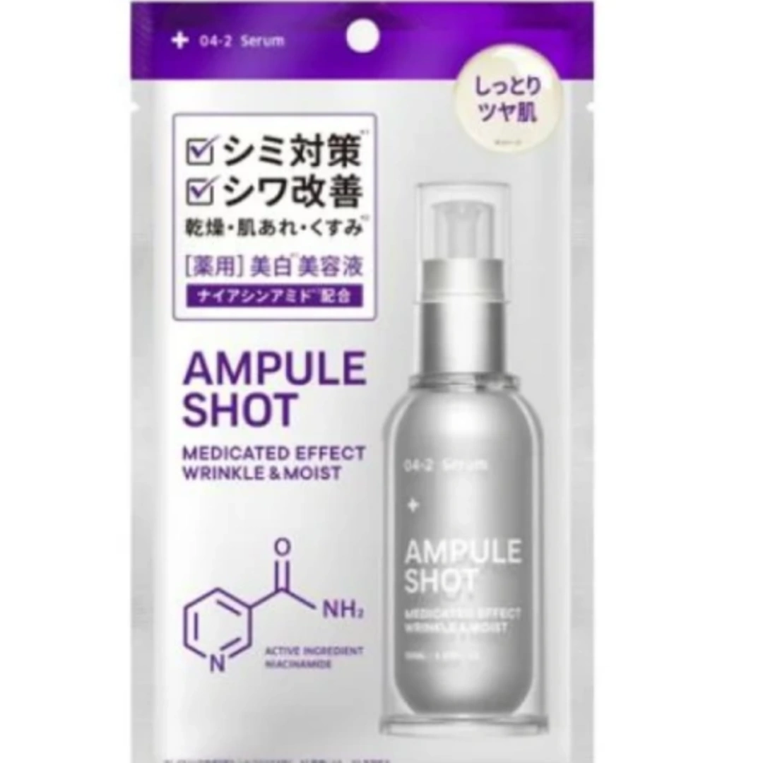 8月に発売されたばかりの新商品 https://ampuleshot.jp/products/niacinamide-serum 【商品の説明】 有効成分ナイアシンアミドを配合した、薬用美白*1美容液。毎日の薬用ケアで、潤いを与えながら、シワを改善。さらに、メラニンの生成を抑制してシミ・そばかすを防ぎ、透明感のある肌へと導きます。 目もと・口もとにも使える、とろみのあるこっくりとした濃密テクスチャー。気になる乾燥、肌あれ、くすみ*2などの肌悩みをケアして、キメの整ったツヤ肌へ導く集中美容液。 *1 メラニンの生成を抑え、しみ・そばかすを防ぐ *2 乾燥による 【使い方】 化粧水などで肌を整えた後、手のひらに適量(2〜3プッシュ)をとり、顔全体または気になる部分になじませてください。 【関連ワード】 化粧水 角質層 ビタミン 乾燥ケア 毛穴ケア キメの乱れ 肌柔軟 美肌保湿成分 インナードライ 成分···ナイアシンアミド