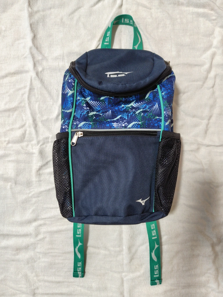 イトマンスイミングスクールのリュックサックです。 週一回、3か月半ほど使用しました。 使用感はあまりありませんが、記名をマジックで消しています。 【情報】 ブランド:ミズノ 型番:AMC-0324 N3JS9X0814 色:ネイビー、ブルー 中古品であることご了承くださいませ。