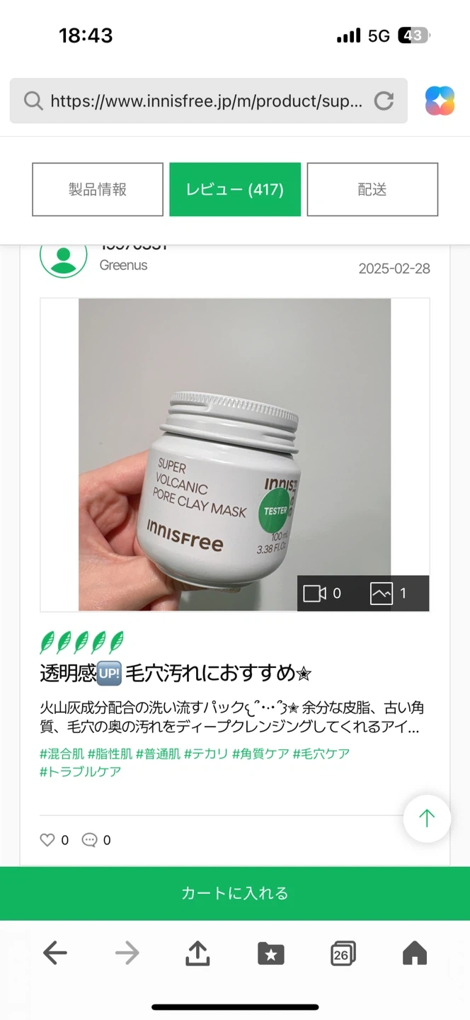 イニスフリーのSuper Volcanic Pore Clay Mask 2X 100mlです 【情報】 ブランド:イニスフリー 商品名:Super Volcanic Pore Clay Mask 2X 容量:100ml×10箱 使用期限:20230313 製造年月日: 20210914 使いましたが問題無く毛穴がキュッとしまります。 気にならない方宜しくお願いしますm(_ _)m 中古品であることご了承ください。