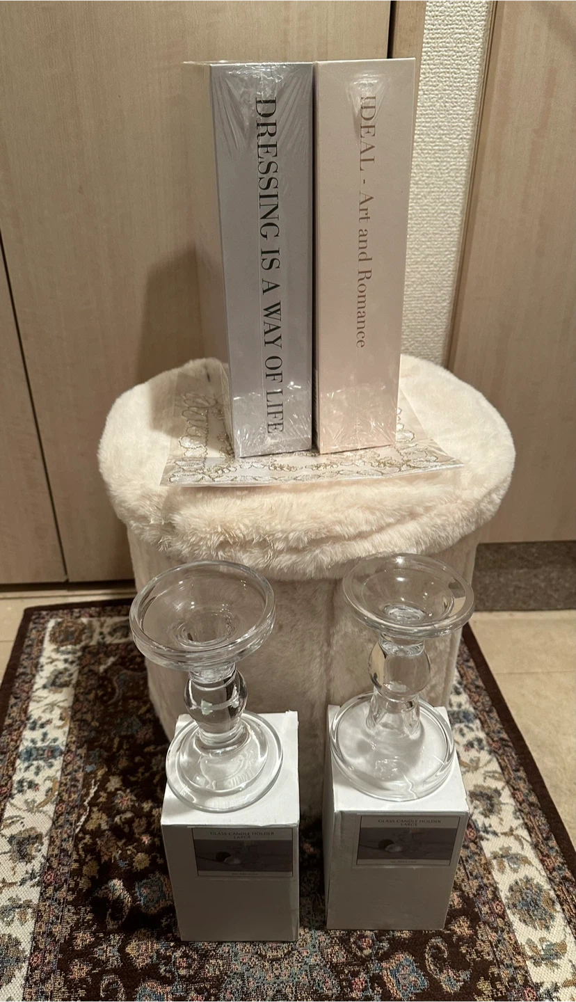 ◎丸型フェイクファースツール 中に物を収納してストレージボックスとして使用できます。 触り心地が滑らかでとっても気持ちいいです♪ ◎ブック型小物入れ2つ 新品未開封 ◎グラスキャンドルホルダー 新品未開封 写真のために開封し写真撮りました ◎レースクロス 新品未開封 ※早く取りに来ていただける方優先のため、時間メッセージ記載の上宜しくお願い致します。 マメにやり取りできる方でお願い致します。 受け渡しはマンションの下まで来てくださる方でお願い致します。 住所は川口市並木3-8-18になります。 取引開始しましたらマンション名もお伝え致します。
