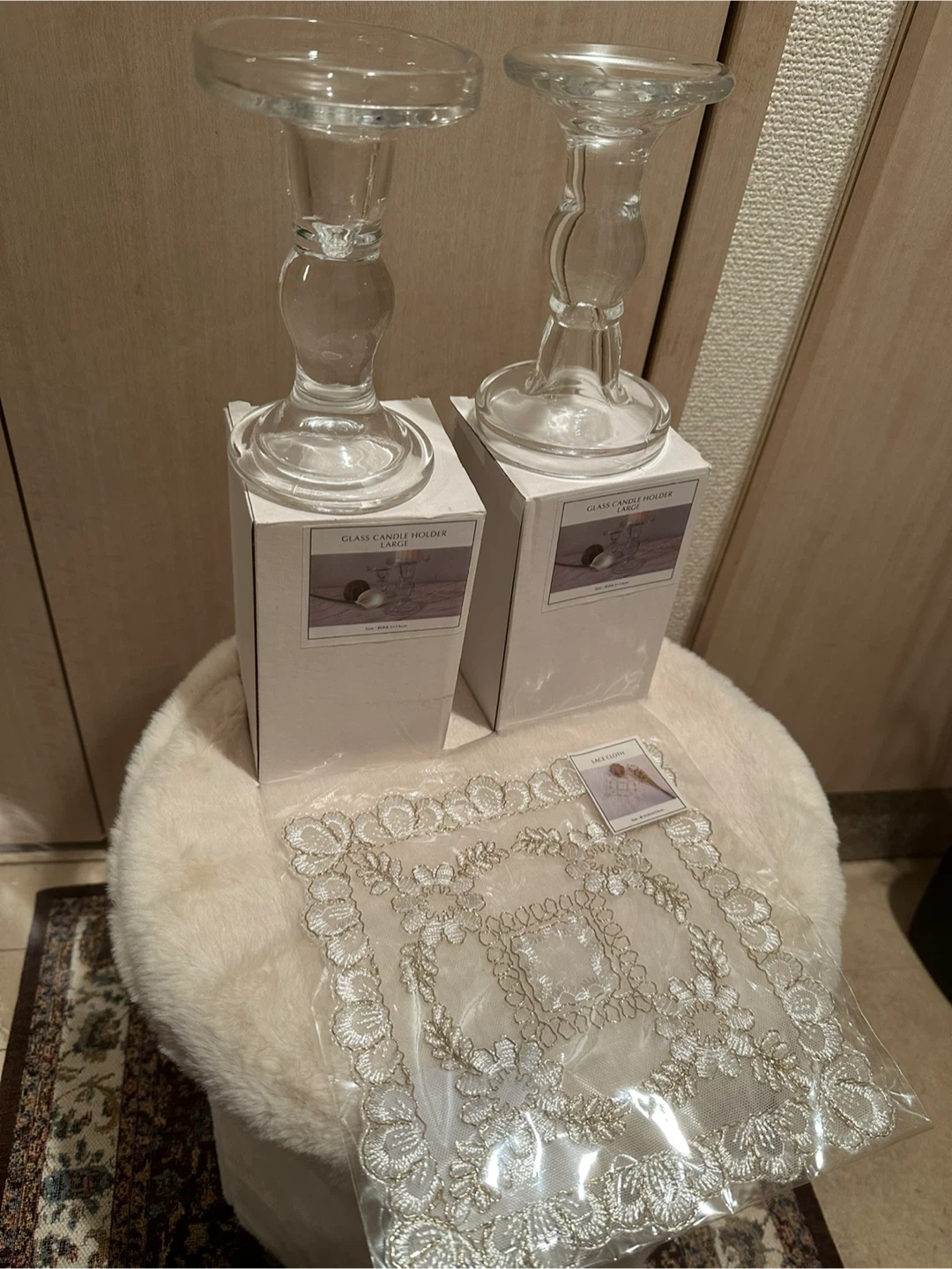 インテリア 丸型フェイクファースツール ブック型ボックス キャンドルホルダー レースクロス