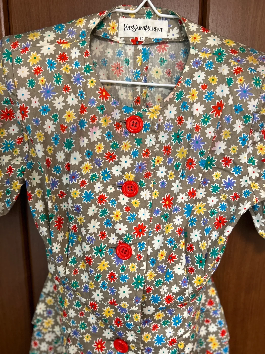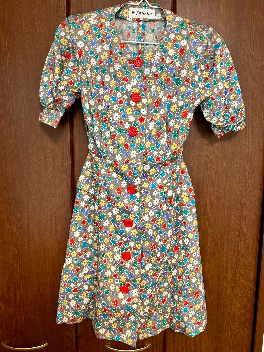 イヴサンローランの花柄ワンピースです 【情報】 ブランド:イヴサンローラン サイズ:34 素材:表地 綿100%、裏地 キュプラ 柄:花柄 【状態】 使用感少なめ、全体的にきれい 【待ち合わせ】 地下鉄東西線落合駅orJR総武本線東中野駅 中古品であることご了承ください