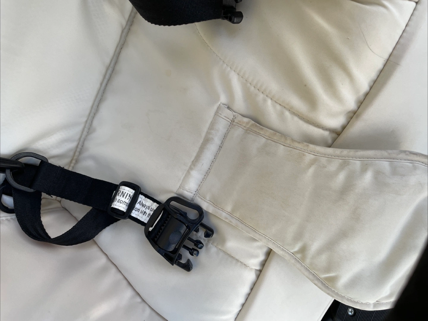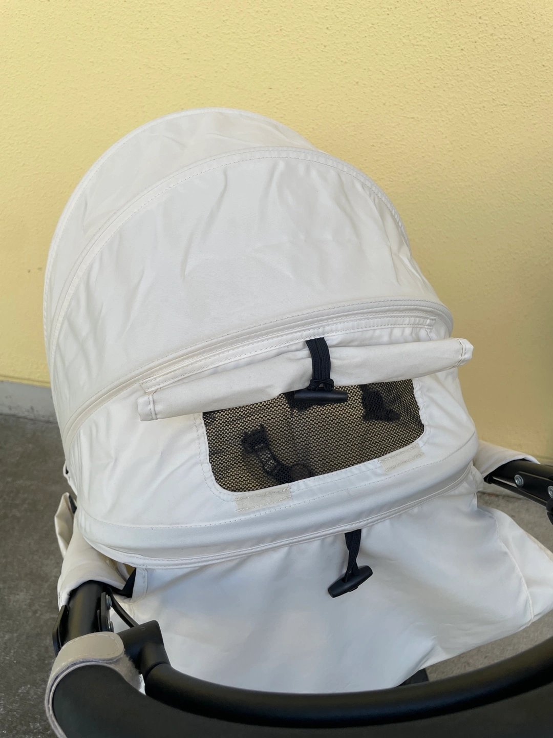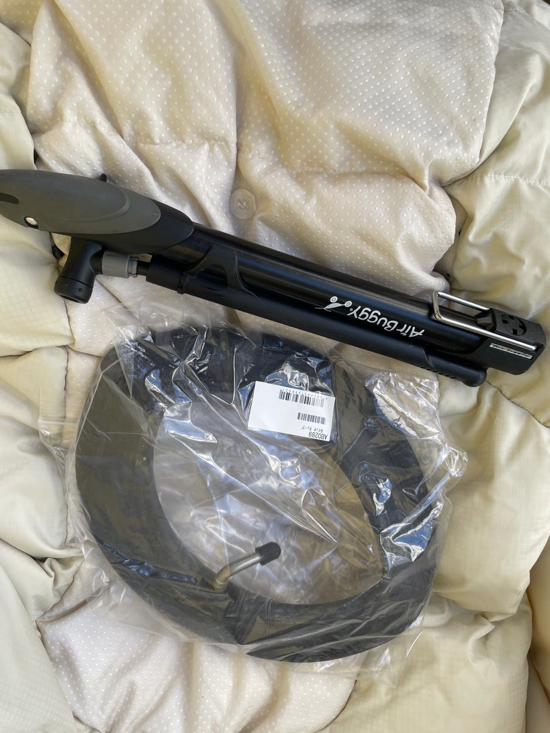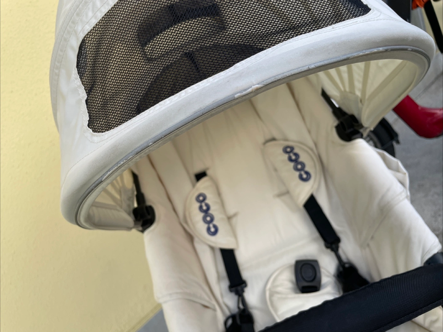 エアバギーのベビーカーです 2年ほど前にキャロットでお譲りいただきました。 乗り心地も大変良く気に入ってましたが、 B型ベビーカー購入後使用しなくなったためお譲りします。 【情報】 ブランド:エアバギー モデル:COCO 数年前に500台限定で発売されたエアバギーココ ブレーキ クルーズライン ( airbuggy coco ) ※カラーはプラチナアーモンドといってオフホワイトのようなお色で、他の方と被りません 【状態】 使用感、シミ、汚れが少しあります 【付属品】 純正の空気入れ、フットマフ、サンシェードもあります。 当方追加購入: 純正タイヤカバー、純正レインカバー(新品購入ですがもともとすこし汚れあり)、純正タイヤカバー、純正チューブ(前の持ち主の方から後輪(おそらく左?)が抜けやすいと聞いて新品購入し交換済みです。 自転車屋さんで交換対応いただき、以前のものも使える状態とのことでお渡しいたします。現状、交換した新しいものがついてます) 中古品であることご了承ください ----- 最初の持ち主の方が大切に使われていたので、年数の経った中古ですが綺麗でした。 オフホワイト系なので、通常使用による使用感があります。 また、ドリンクホルダーで1度カフェオレをこぼしてしまいその部分シミありです。 フットマフは使用感があり、ところどころに薄い汚れがあるためおまけ程度にお考えください。 受け渡しは、笹塚駅・東北沢駅も可能です。 以下商品情報詳細↓ ・対象年齢 首が据わってから(生後3ヶ月頃)~3歳頃(15kg以下) ・背面式3輪ベビーカーです。 (両対面ではありません) ・3歳まで使えるロングユースモデル ・サイズ(mm) 開:W535×D960×H1045 閉:W535×D400×H820 ・リクライニング角度2段階(110° 135°) ・本体重量:9.5kg ・操作性の良い3角構造 ・中空式大型エアタイヤ(軽快な押しやすさ・衝撃吸収) ・エアメッシュクッション(通気性・クッション性) ・ドーム状サンキャノピー ・メッシュ地サンキャノピーカバー(通気性) ・ビッグバスケット(容量17リットル・耐荷重5kgまで) ・駅の改札も通れるスマートサイズ ・ハンドブレーキ ・自立スタンド付き