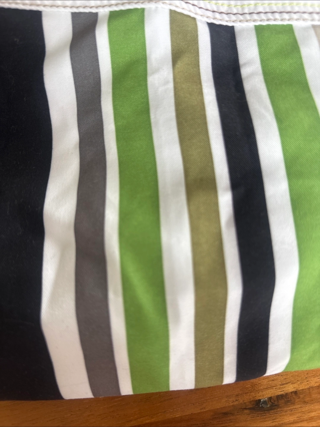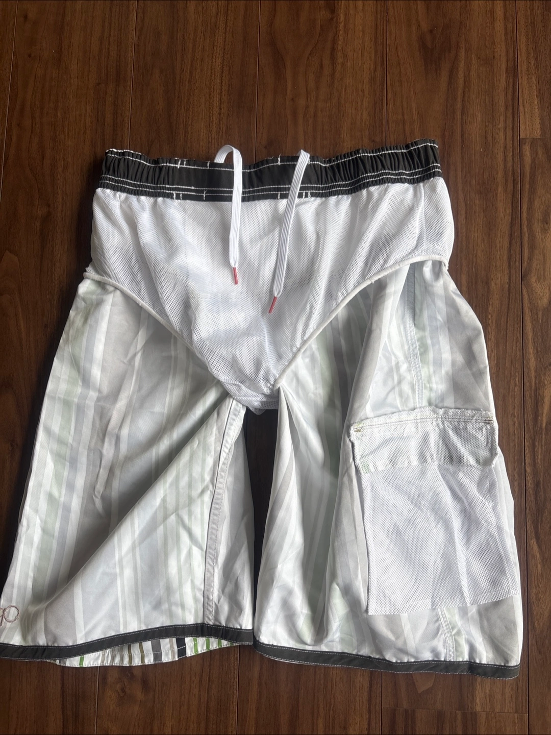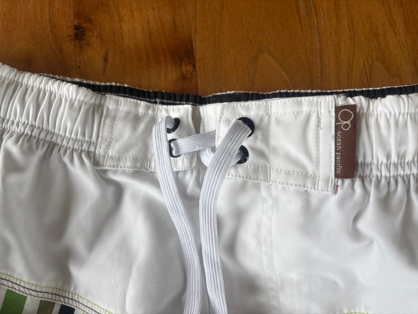 🟩メンズ ハーフパンツ水着🟩 ・ブランド:オーシャンパシフィック ・サイズ:M(胴囲76〜84cm) ・カラー:白、緑、グレー、黒のストライプ柄 ・素材:ポリエステル100% 夫曰く1、2度着用したかも?とのことです。 (※勿論、洗濯済みでの保管です) 長年保管状態でしたので今後も着用することはないとのことで出品します。 私の所見ではシミ、色褪せによる黄ばみ、ほつれ、破れは全くなかったので未使用に近い状態です。 前右下にマジックテープで止められるポケットと、ポケット内にロッカー🔑掛けの輪っか(写真⑧枚目)付き。 内側はメッシュ布になってます。 夏に向け、海やプールのレジャー用水着としておススメしたいと思います。
