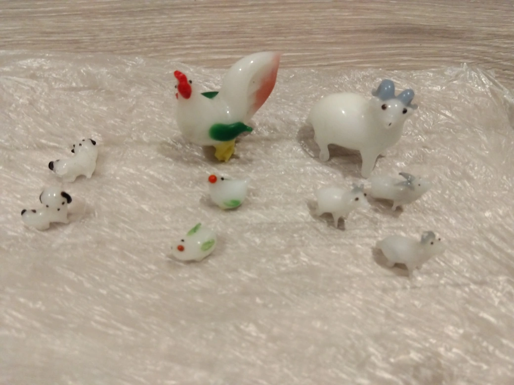 引っ越し整理で出てきたので、出品します。 材質︰ガラス サイズ︰1~3cm 干支の置物です 犬は親もいましたが、足が破損して処分済みです 画像の通り、羊が親1子3、鶏が親1子2、犬が親0子2、の計9点です サイズはかなり小さめです ついていたホコリなどの汚れは簡易的に拭き取りました 梱包などは一切無しでそのまま渡しになりますので、エコバッグなどの入れ物はご準備ください。 (オトク情報) 他の100円出品物と一緒に希望される場合は、他の100円の品はいくつでもタダになります。