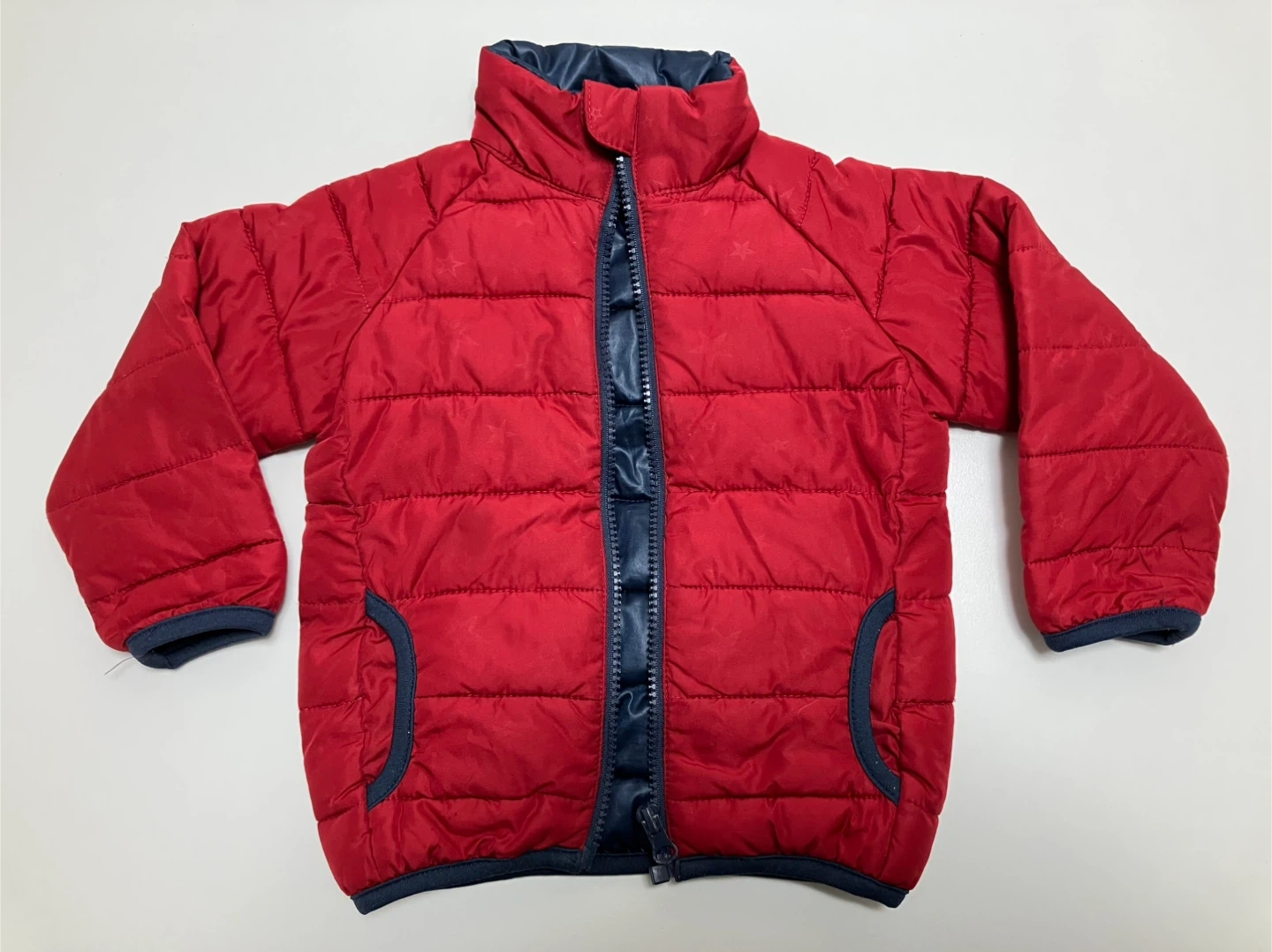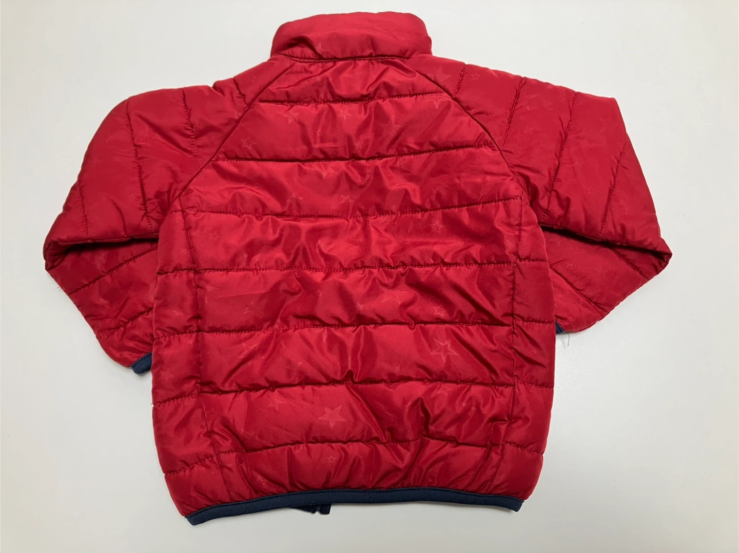 キッズの中綿ジャケット、サイズ80です。 フードがなく保育園のお出かけ用アウターにしていたため使用頻度が低く状態良好です。見えづらいですが角度によって星柄のデザインがあります。 普段使いや保育園の洗い替え用等にいかがでしょうか。 洗濯済、当方ペット喫煙者無し。 中古品であることご了承ください。