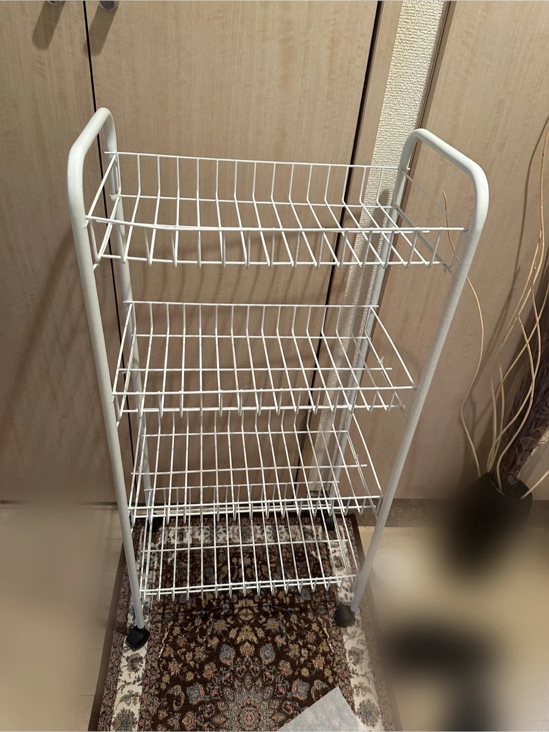 キャスター付きラック。 組み立て際に取り付けが悪い部分に結束バンドを数カ所付けております。 目立たないように取り付けております が気になる方はお控え下さい。 目立つ傷や汚れはありませんが見落としがありましたらご了承下さい。 除菌で拭いております。 横約40cm 高さ約84cm 奥行き約23cm 多少の誤差はご了承下さい。 ※早く取りに来ていただける方優先のため、時間メッセージ記載の上宜しくお願い致します。 本日中のお取引できる方優先しております。 マメにやり取りできる方でお願い致します。 受け渡しはマンションの下まで来てくださる方でお願い致します。 住所は川口市並木3-8-18になります。 取引開始しましたらマンション名もお伝え致します。