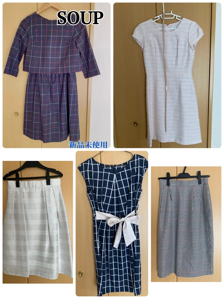 ※女性のみ(男性と分かれば当日でもキャンセルします) ※定型文は返信しません (メッセージにおいくつぐらいか年代も添えてもらえると嬉しいです) 取引場所:NTT田端ビル近辺 (詳細はメッセージにてお伝えします) レディース 洋服 7〜9号(S〜M) 11着まとめて1000円で差し上げます 紺色のSOUPのワンピース、白のPLSTのスカートははタグ付き新品です。 チェックのBurberrysのスカートはシルク混で手触り良いです。 ほかエマジェイムス、エスプリミュールなど、状態のいいものが多いです。 この服が見たい、細かい箇所を見たい等はメッセージでお知らせください😊
