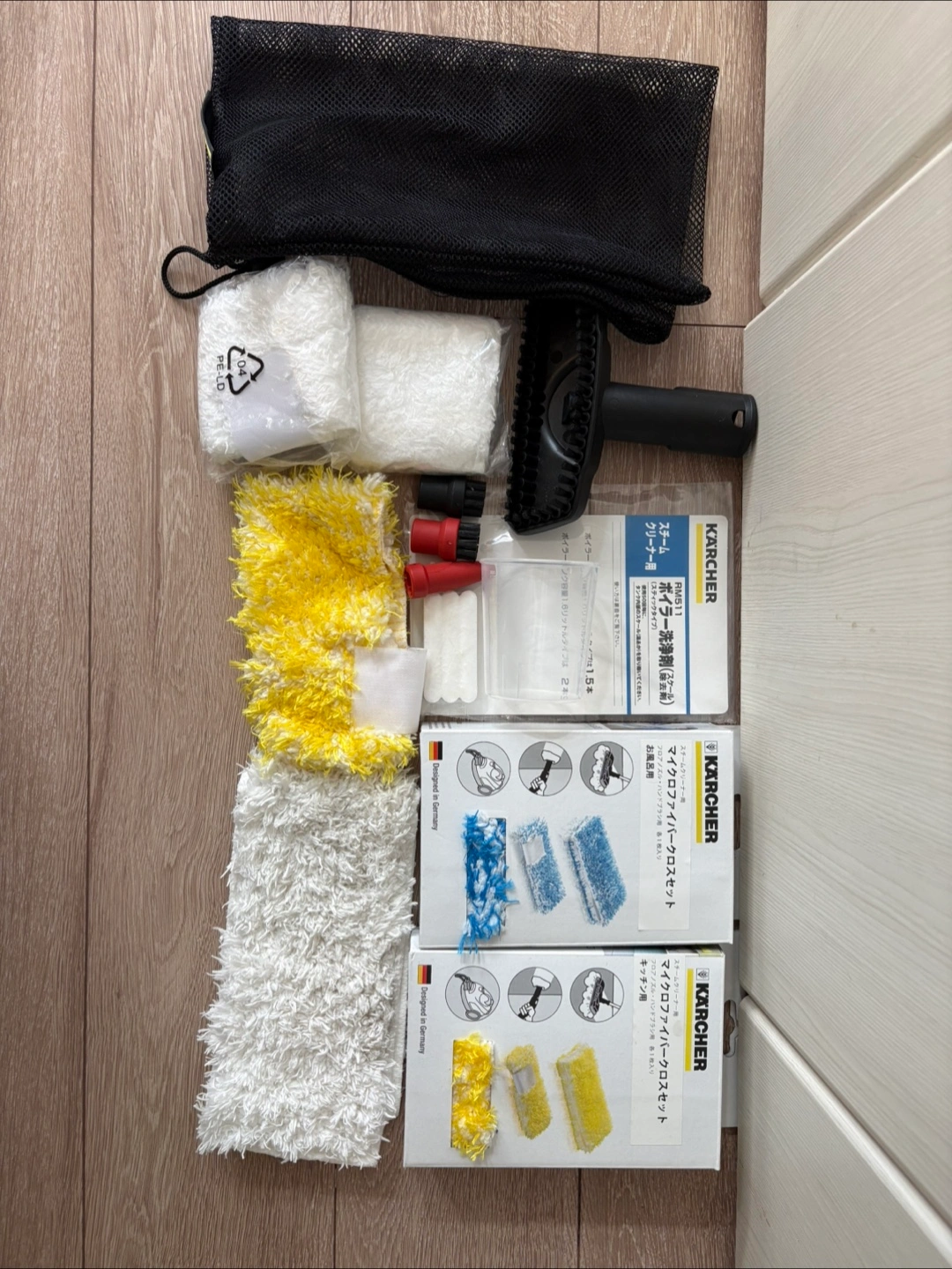 去年購入して3回ほど使いました。 中古にご理解ある方でお願いします。 付属のモップは新品もあります。 箱にしまおうと思ったのですが ホースが入らないので、はみ出た状態でのお渡しとなります🙏 【情報】 ブランド:ケルヒャー 商品:スチームクリーナー 型番:SC 1 プレミアム 【状態】 中古品 【付属品】 写真に写っているもの