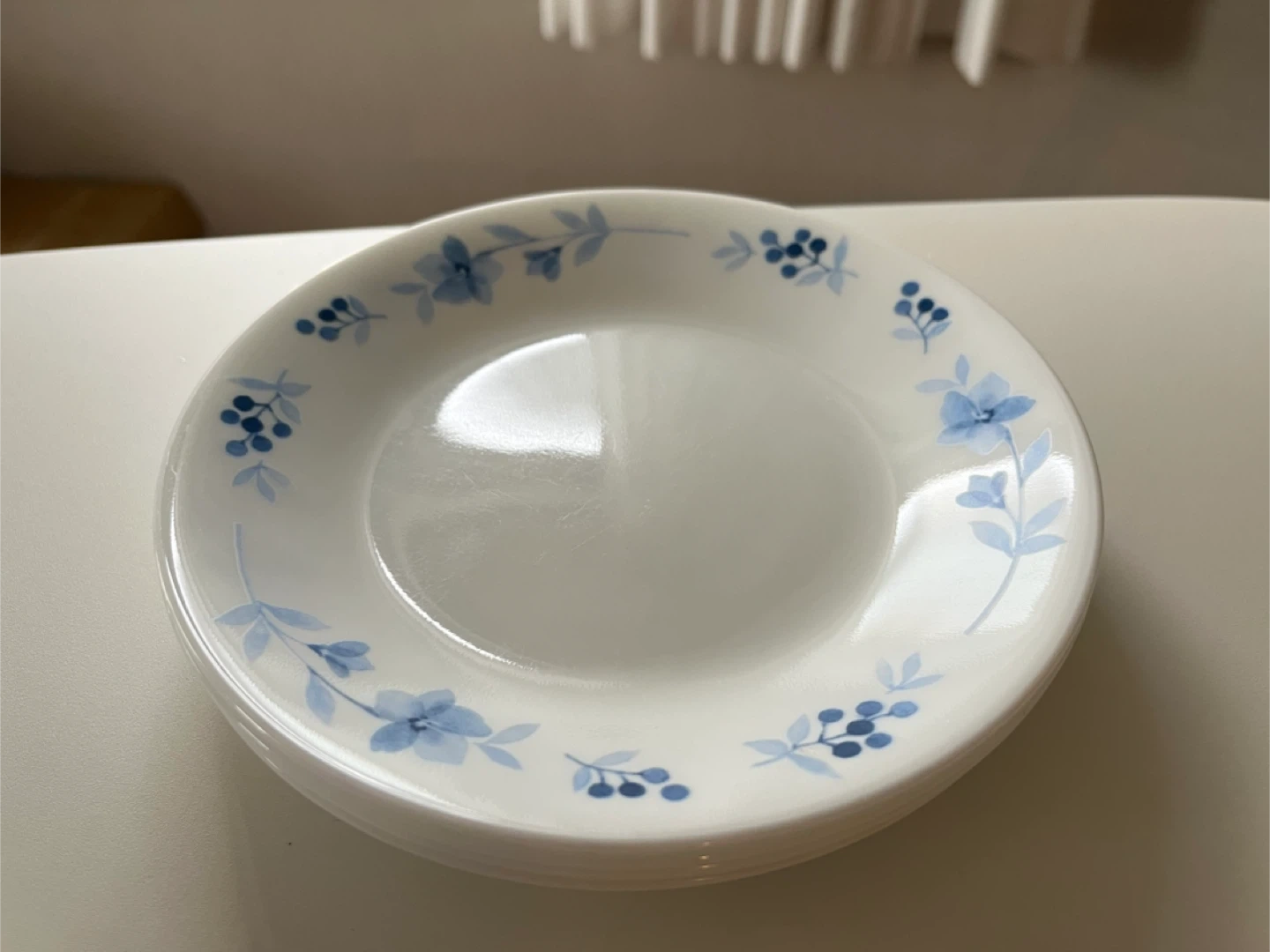 コレールの小皿(約17cm)です。 軽く、お手入れしやすい、積み重ねても高さがでないので省スペースです。 可愛らしいブルーのお花柄で現在は廃盤かもしれません。 素材:前面積層強化ガラス 原産国:アメリカ 耐熱温度差:150度 食器洗い・乾燥機・電子レンジ・オーブン対応 綺麗に使用してきましたが、多少の使用感はあります。 中古品であることをご了承ください。 桜新町駅(田園都市線)も可能です。