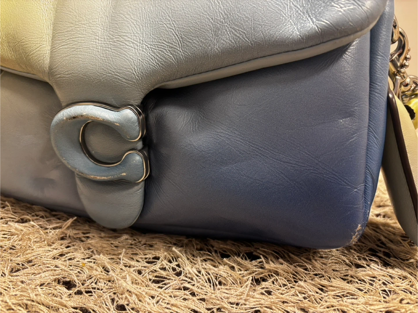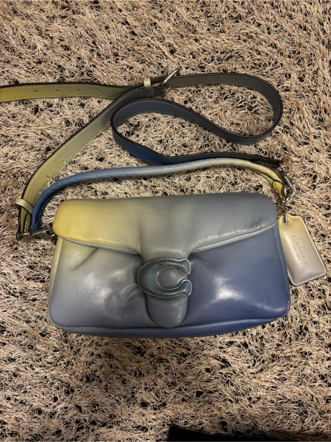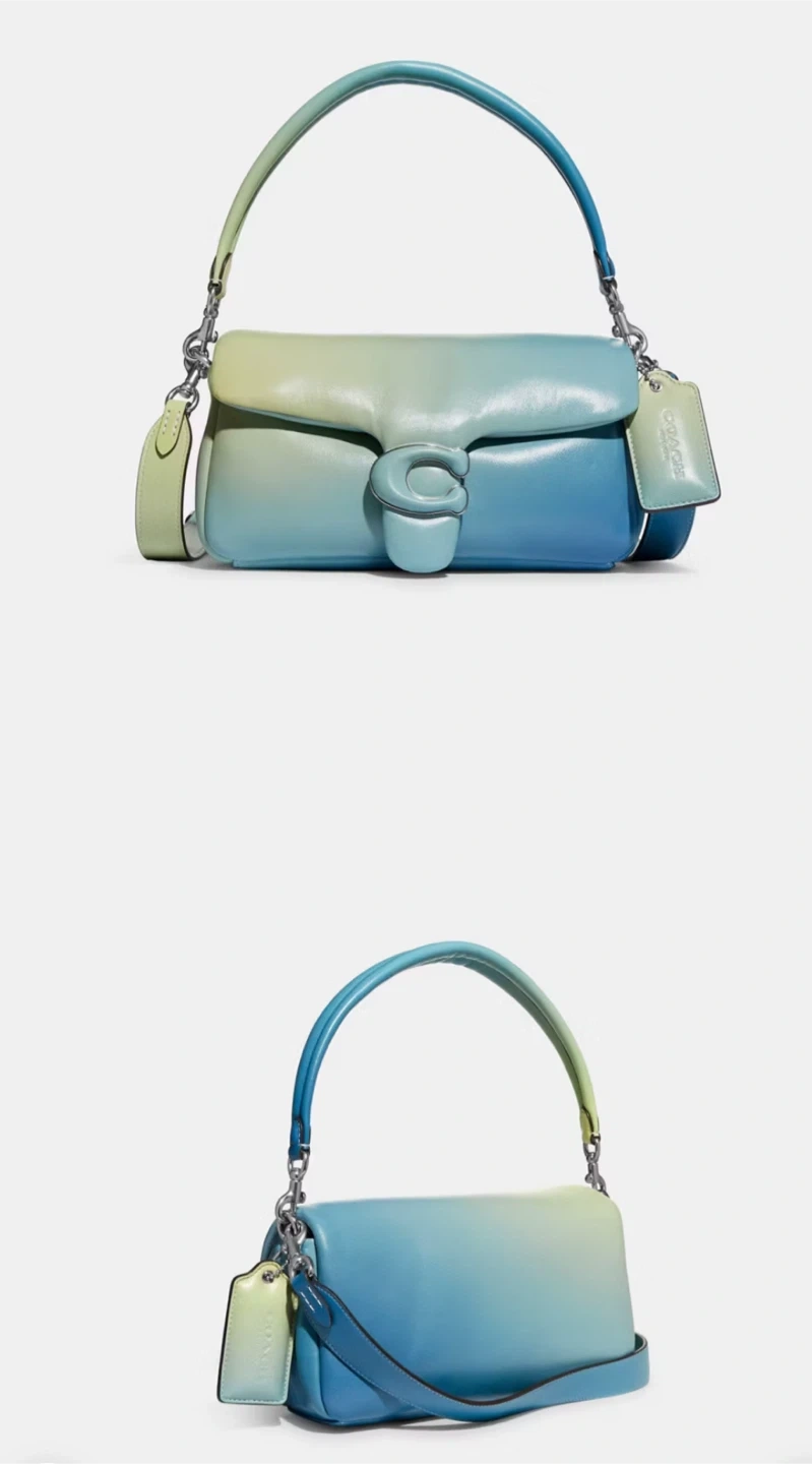 Coach - カラー: グラデーション(イエローからブルー) - 素材: レザー - 内部構造: ファスナー付きポケットあり - ストラップ: 調整可能なショルダーストラップ - 26.5cm (L) x 14.5cm (H) x 7.5cm (W) - SKU No. CA083 LHMVX
