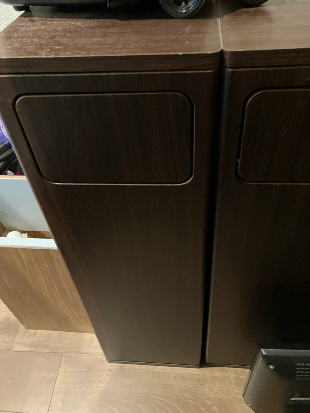 スタイリッシュなデザインでまるで家具の様ゴミ箱に見えなくお洒落で高級感もあります 木製プッシュ式ダストボックス。臭いが漏れにくく押すだけで簡単に捨てられるプッシュ扉式になります。 ゴミ袋の着脱も簡単な前扉があり利便性もバツグンでございます。リビングル―ム、ダイニングルーム、ベッドル―ム、またお店、オフィスにも調和するお品です。インテリアにこだわる方にもお薦めいたします。 美品でございます。少し白い汚れがあります。上にものを置いたりはしましたが、ゴミ箱としてつかっていませんでした。引越しのため出品します。 大きさ 縦80cm横25cm奥行き30cm 捨て口 横19cm縦12cm ご覧いただきありがとうございます。