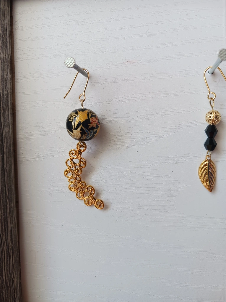 あたたかさ左6cm 右5cm アシンメトリーのピアスです! 左側には和柄鶴で、これだけでも高価なものです🤗 よろしくお願いいたします! 他もピアスもあるので、よろしくお願いいたします🙇♀️