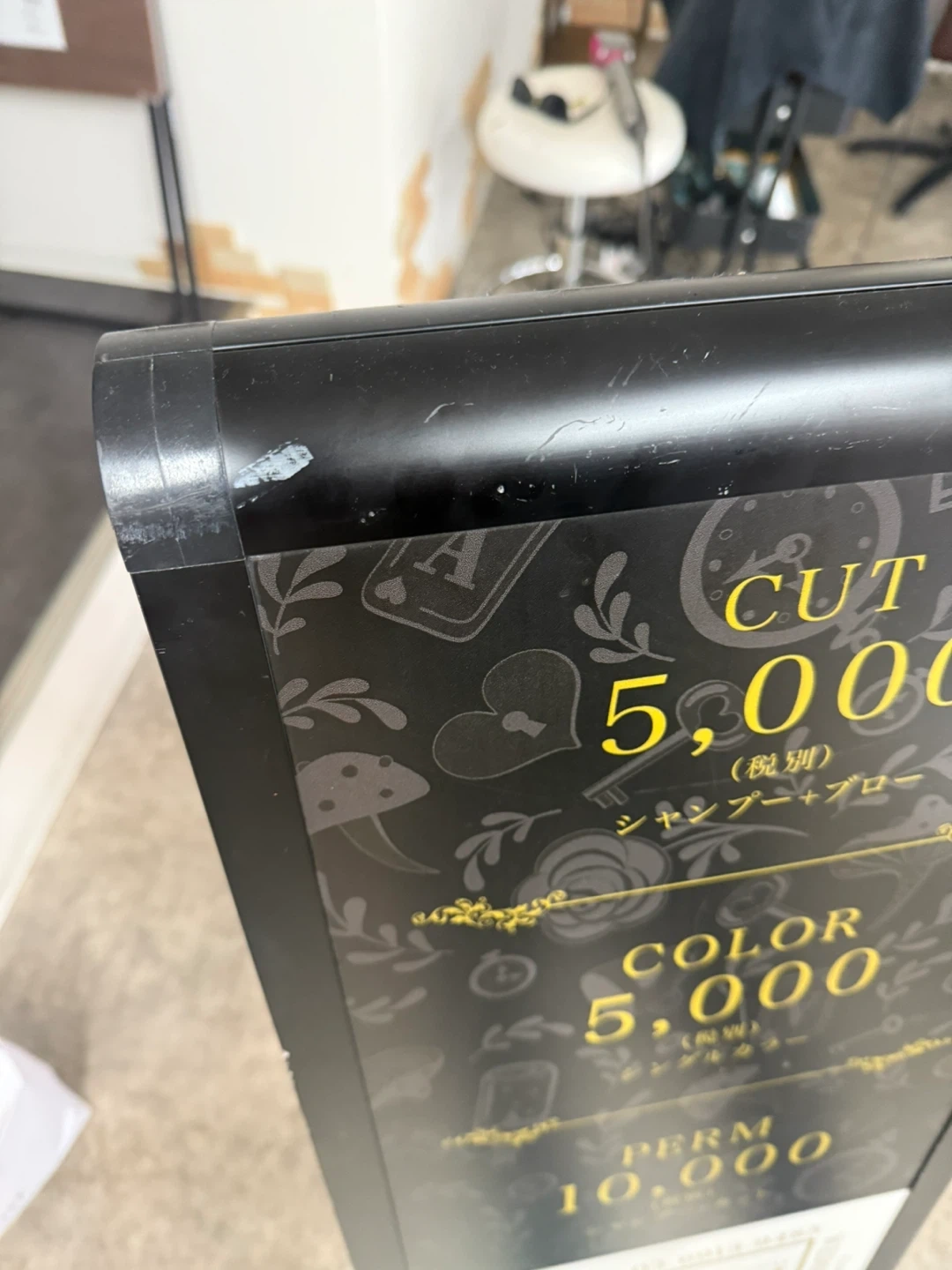 美容室のサインボードです ・色:ブラック ・状態:使用感はありますが、まだ使用できます 中古品であることご了承ください 観覧ありがとうございます 美容室で使っていたA型A1型看板引き継ぎ使って頂きましたら幸いです 風でたおれたりで傷あります、 塗装やマジックなどどかくせます。 なかはネジはずしてパネルを入れ替えるだけ 本体25000くらいしました。 取りにきて頂きましたら幸いです 即引き取りお値引きできます。