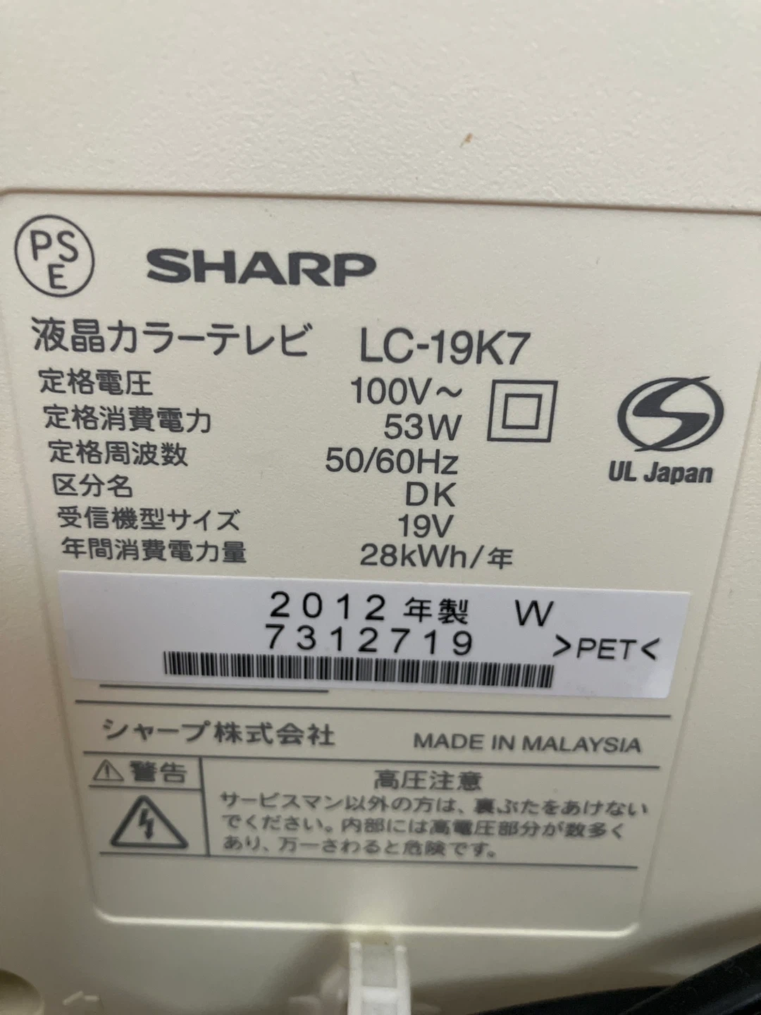 シャープの液晶カラーテレビです 【情報】 ブランド:シャープ 商品名:AQUOS 液晶カラーテレビ 型番:LC-19K7 年式:2012年製 サイズ:19V型 【状態】 使用感はありますが、目立つ傷はありません。動作確認済み。リモコンも動作確認済み。 【付属品】 リモコン 中古品であることご了承ください。 2台目、3台目のTVとしていかがでしょうか?