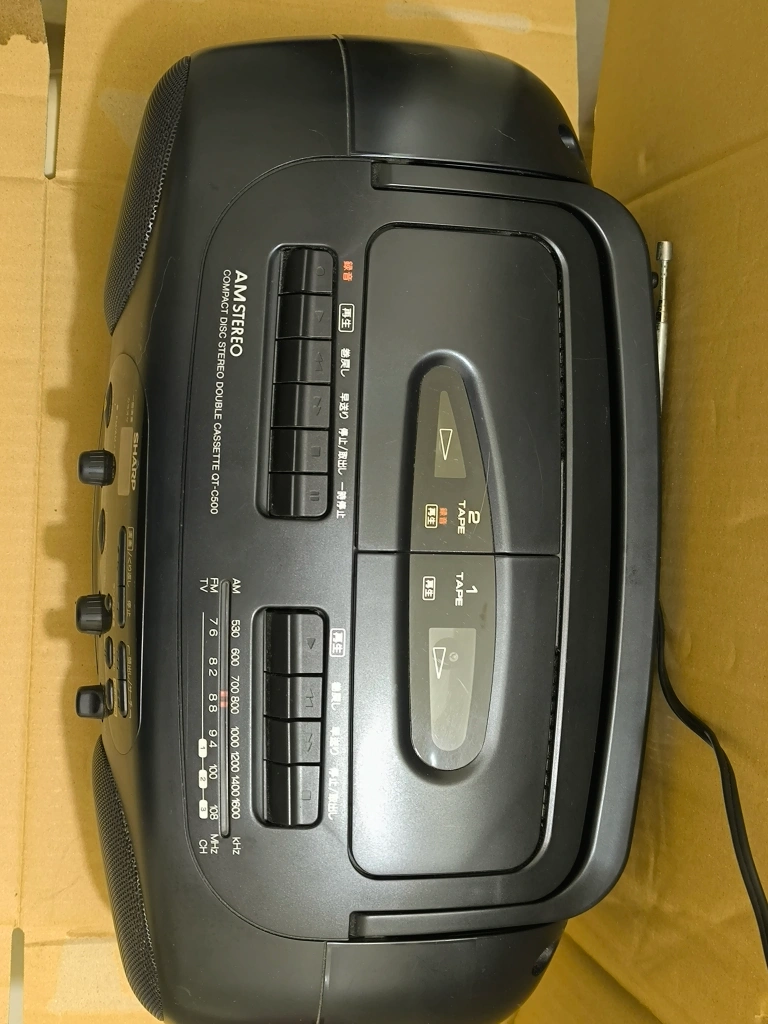 シャープのCDラジカセです 【情報】 ブランド:シャープ 型番:QT-5500 年式:93年製 【状態】 使用感はありますが、大きなキズはありません CDは再生されました。 がセットテ—プが無いので動作未確認 ラジオはおとは出ますがチュ—ニング不可