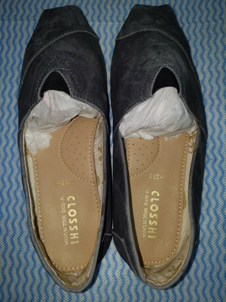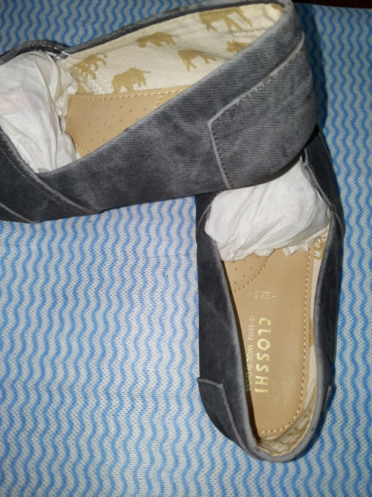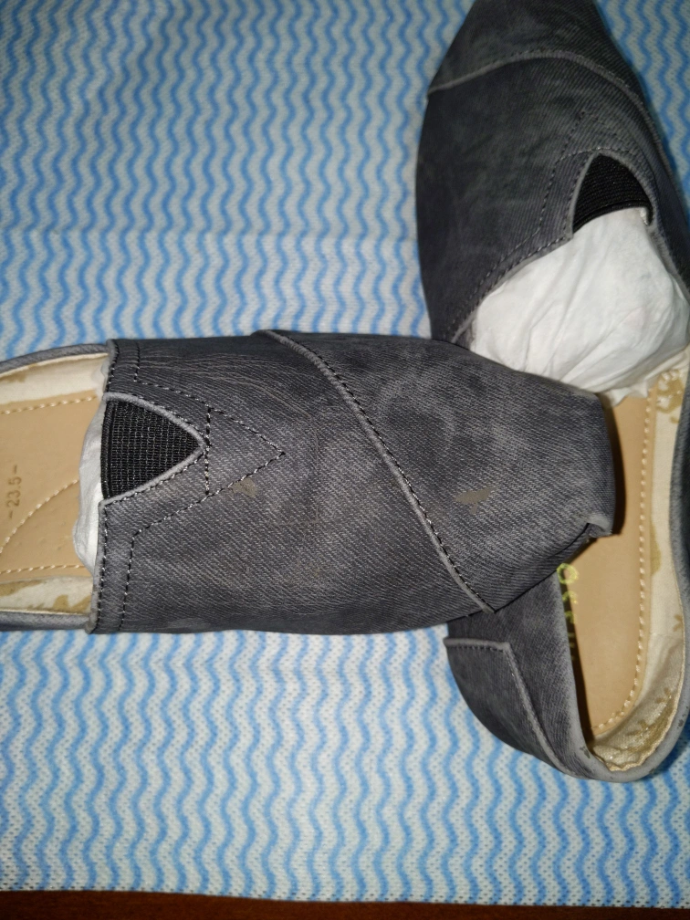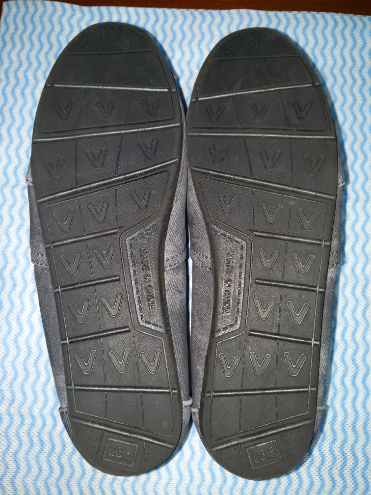 シューズ(23.5センチ)グレー系 🔵ヌバック系の合皮 ★体育館で、スリッパ代わりに利用していた、シューズです。 そと歩きには使用していません。 中古品です。 よろしければお願いします。