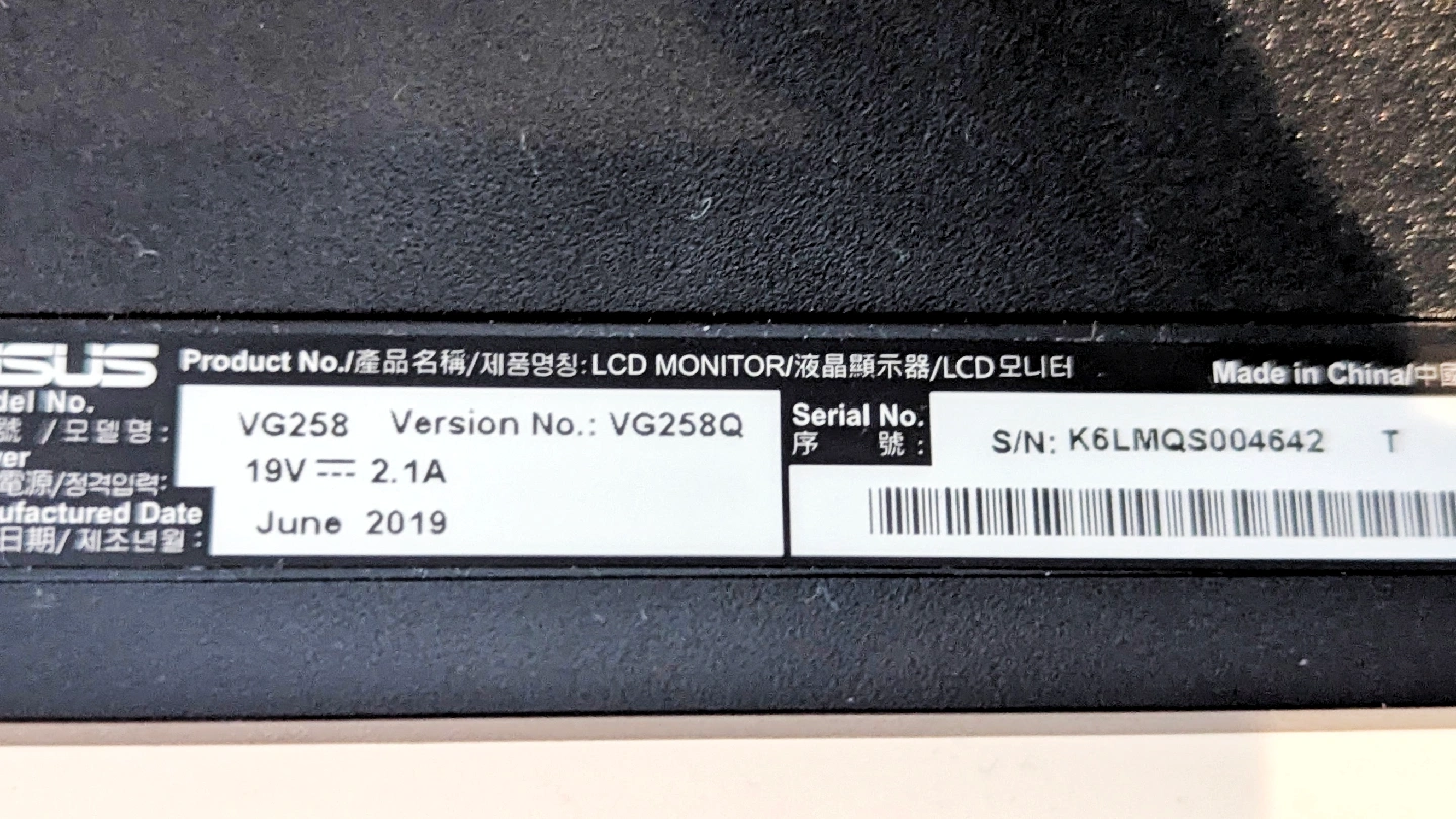 【ジャンク】ASUS VG258Q ゲーミングモニター