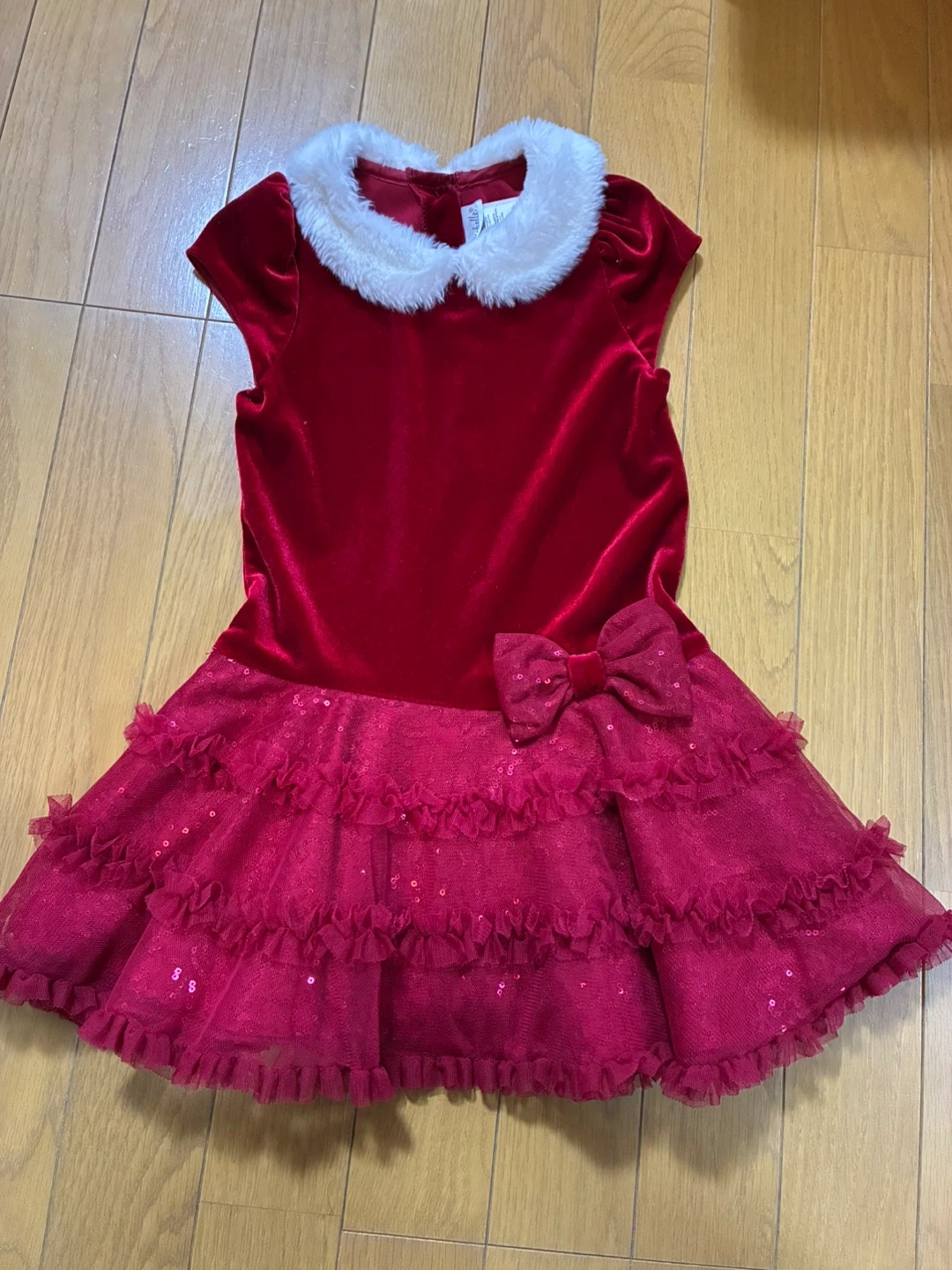 ジョナミッシェルのワンピースです 【情報】 ブランド:ジョナミッシェル サイズ:3T(90-100) カラー:赤 素材:ポリエステル、アクリル 【状態】 目立つ傷や汚れなし ハロウィンやクリスマスパーティーなどに如何でしょうか? スカートが何層にもなって、スパンコールもキラキラしていてかわいいです(^^) 中古品であることご了承ください