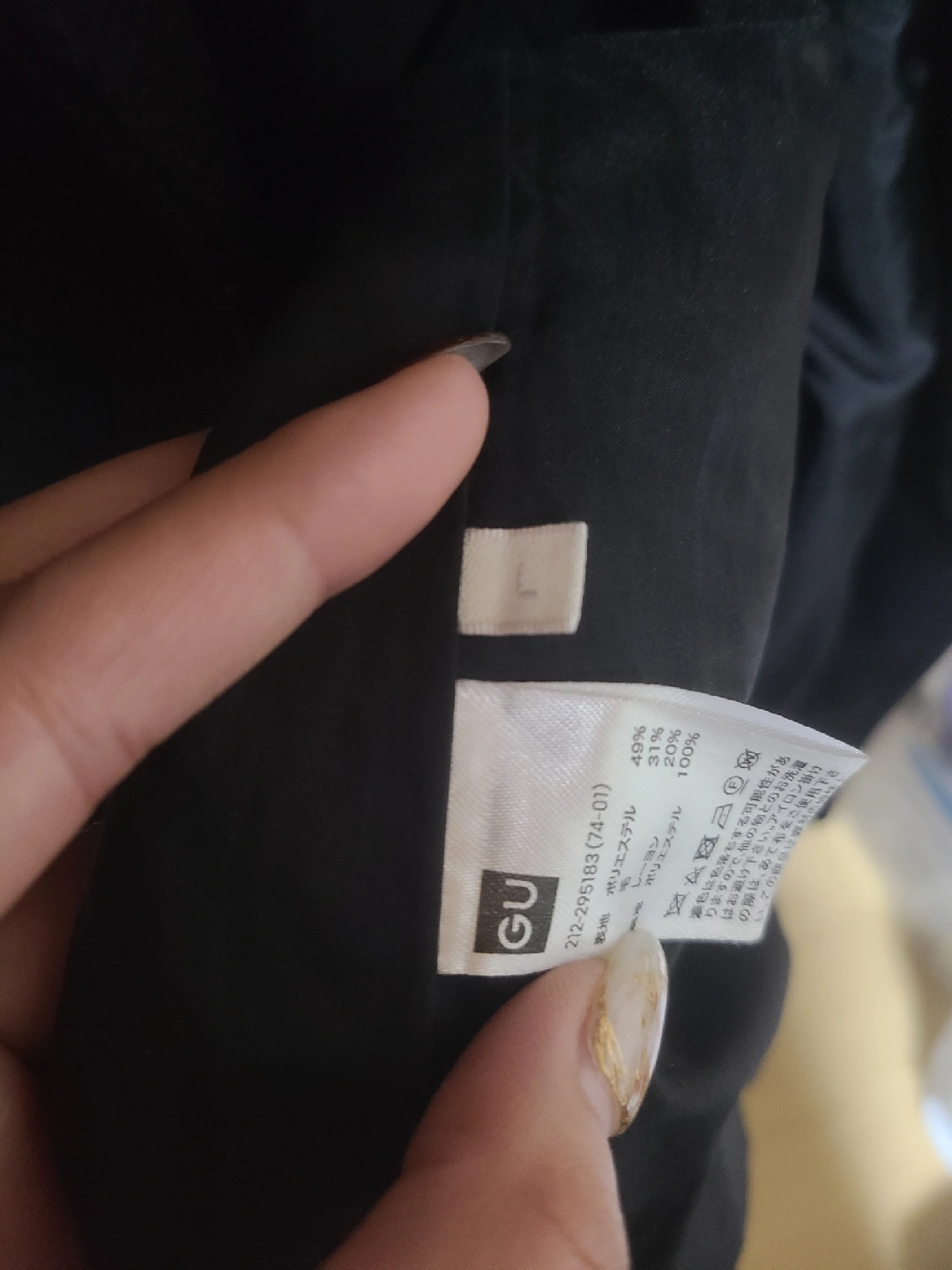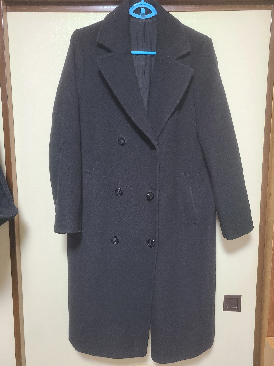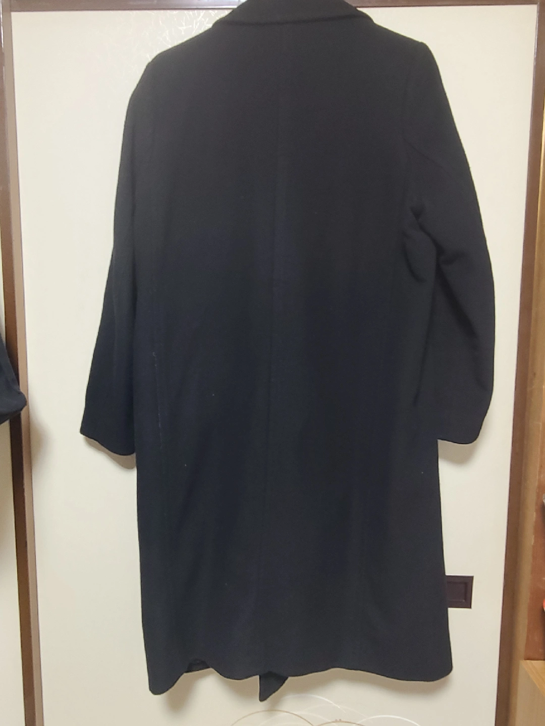 ジーユーのコート ・カラー:ブラック ・サイズ:L ・素材:ポリエステル49%、毛29%、レーヨン20%、アクリル2% ・使用感あり(うっすらですが毛玉あり) 着丈103cm 着幅40cm 袖丈60cm 中古品であることをご了承くださいm(_ _)m