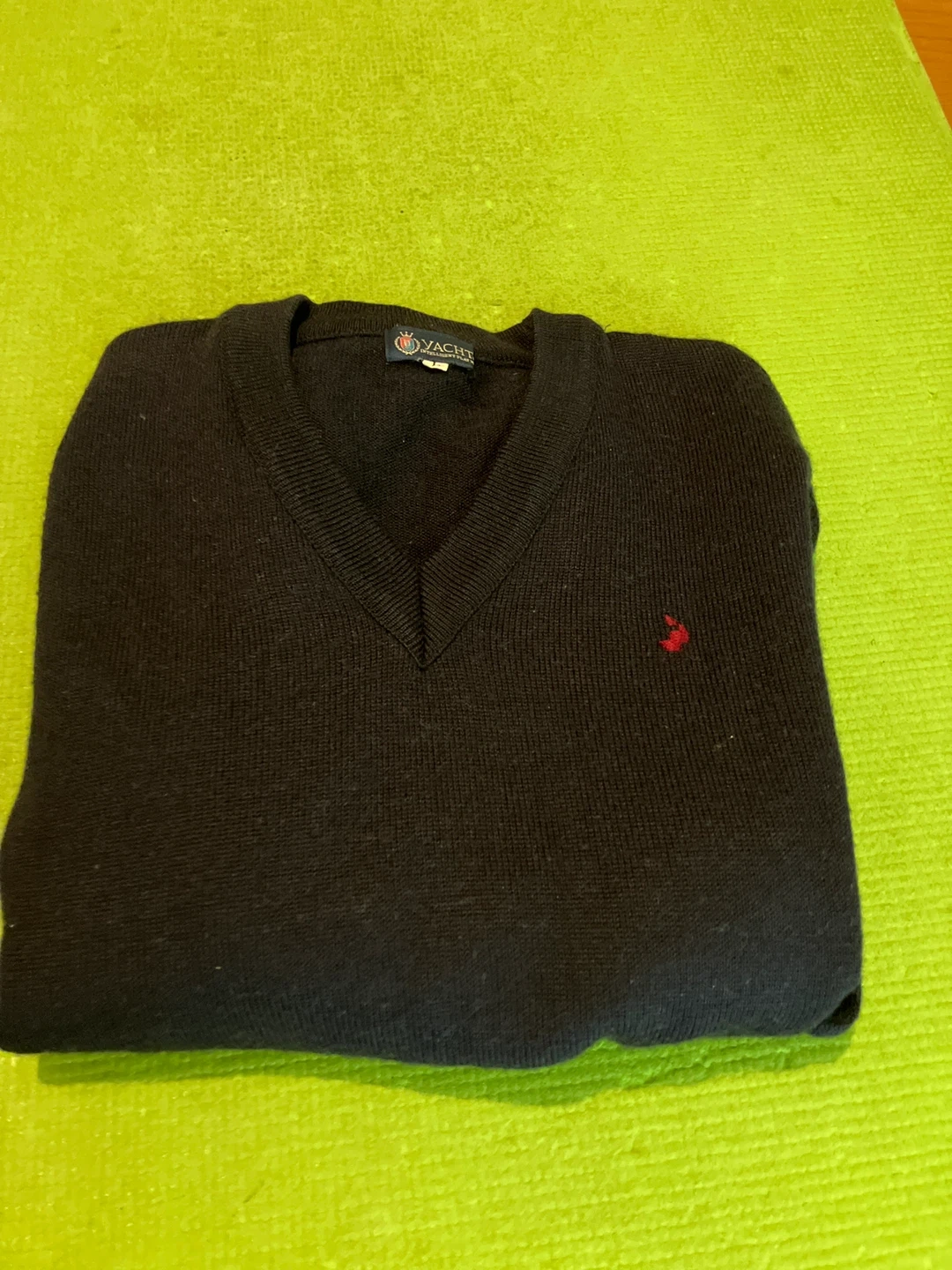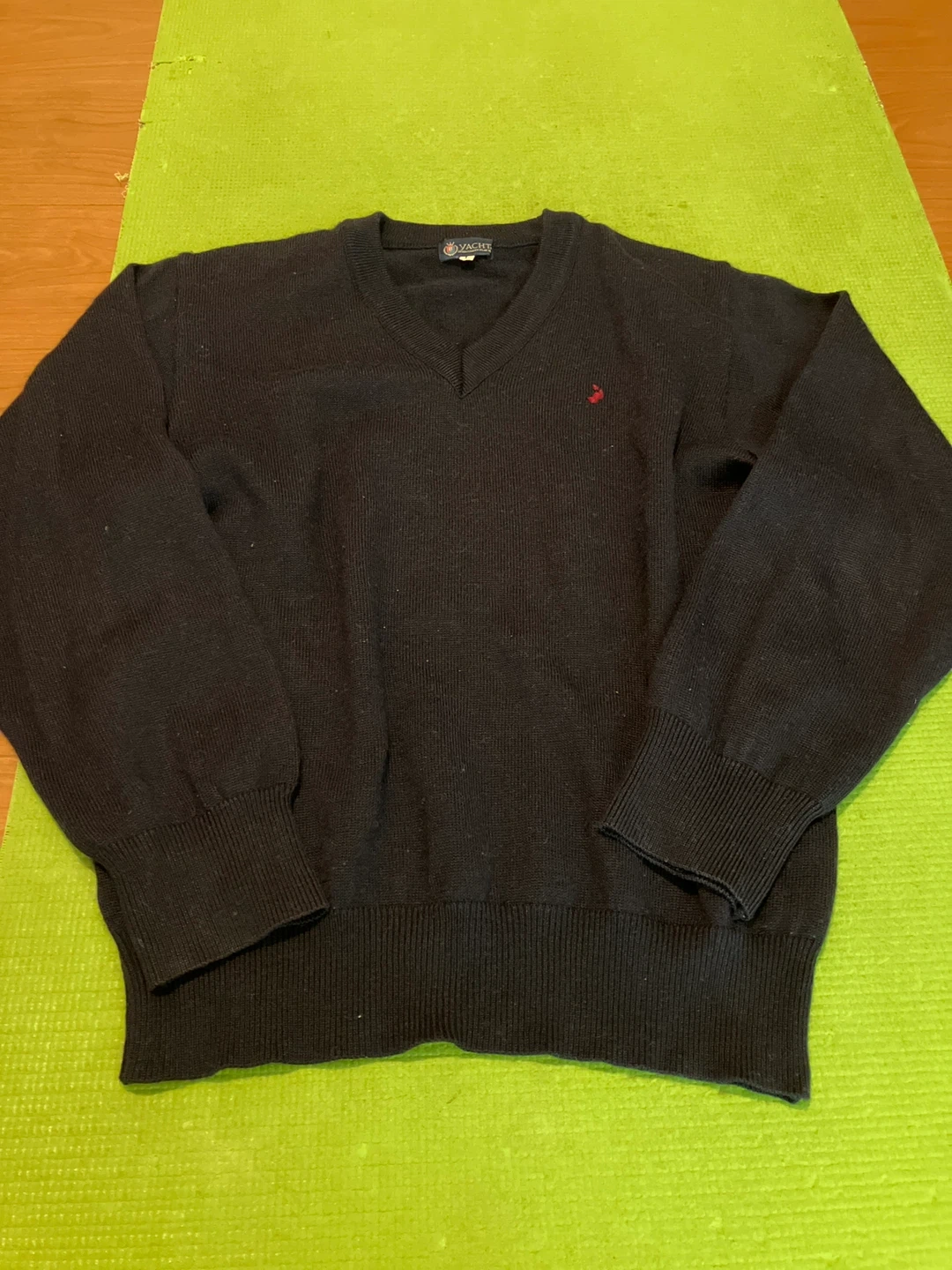 スクールセーター L ・カラー:ネイビー ・サイズ:L ・胸元に赤い刺繍ロゴあり ・使用感少なめ 中古品であることご了承ください