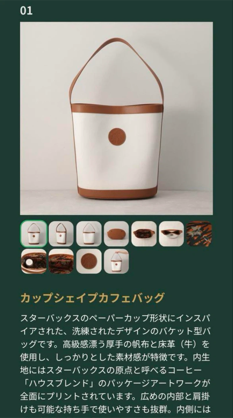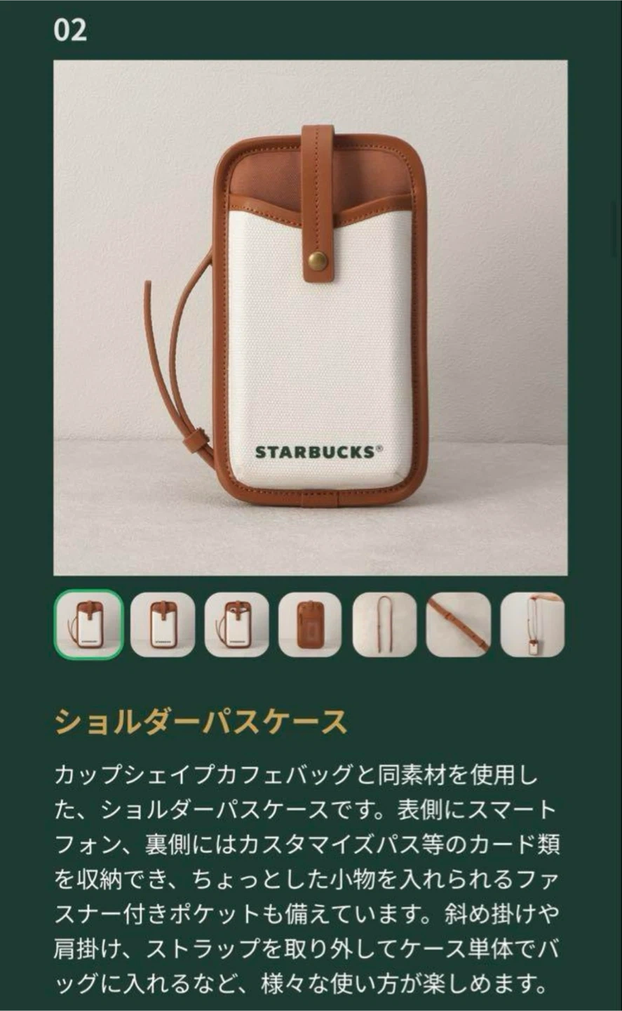 スターバックスマイカスタマイズジャーニーセット Starbucks My Customize Journey Set ①バッグ ②パスケース 以上2点 ■カップシェイプカフェバッグ 【材質】表地:綿、床革(牛)     裏地:ポリエステル 【サイズ】約縦30cm x 横30cm x マチ15cm 【内装】ボトルホルダー x 1、    ファスナーポケット x 1、オープンポケット x 1 【重さ】約434g ■ショルダーパスケース 【材質】表地:床革(牛)、綿、ポリ塩化ビニル     裏地:ポリエステル 【サイズ】本体:約 縦19cm x 横11cm x マチ1cm ショルダーストラップ長さ:最短約109cm/最長約123cm 【重さ】本体:約77g     ショルダーストラップ:約66g