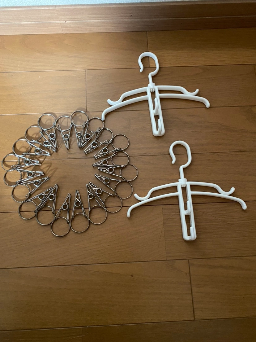 *ステンレス製 リング付き洗濯バサミ 20個 *パーカーハンガー 2個 数回使用しています。 神経質な方は、ご遠慮下さい。 使用感や汚れの捉え方には個人差があります。 素人検品ですので見落としがあるかもしれません。 中古品ということをご理解いただいた上で、ご購入をお願いいたします。 購入後のクレームやキャンセルはお断りしております。 気になる点がありましたら、お気軽にご質問下さい。 よろしくお願いいたします。 他の場所にも出品していますのでどちらかで売れれば急遽出品を中止させていただくことがありますのでご了承ください。