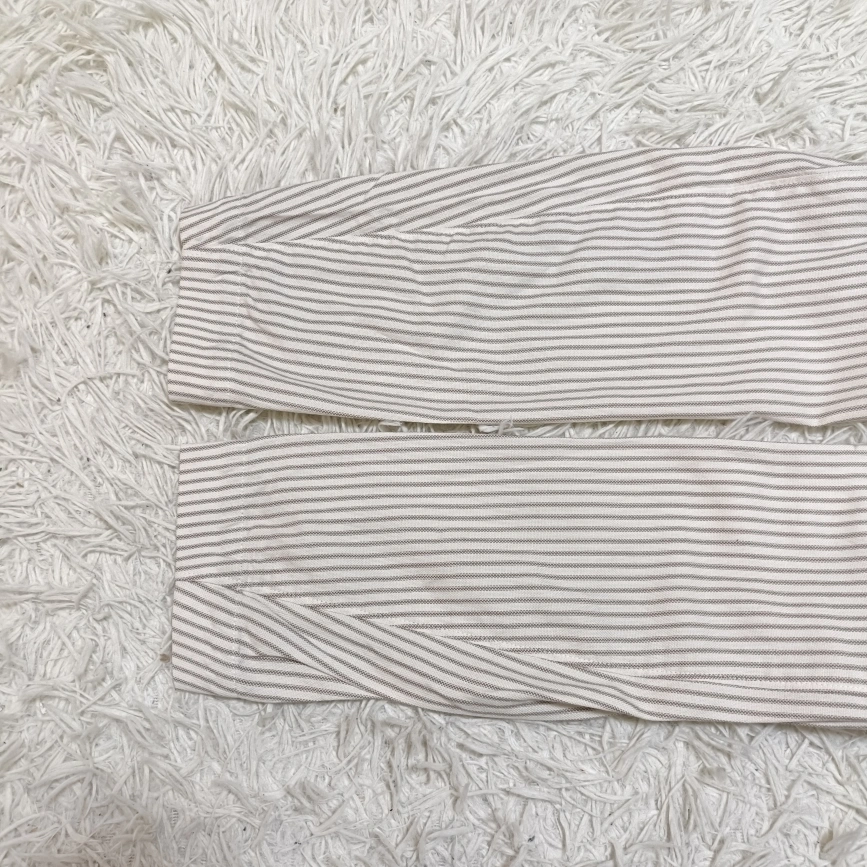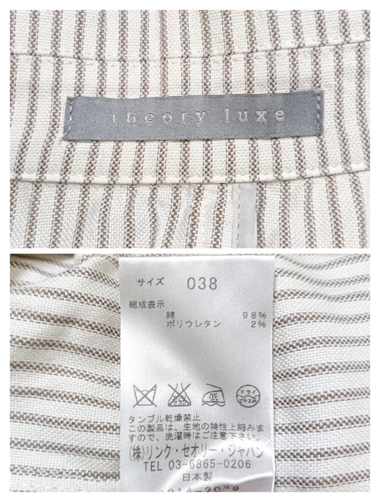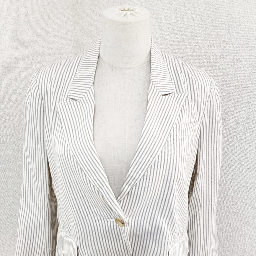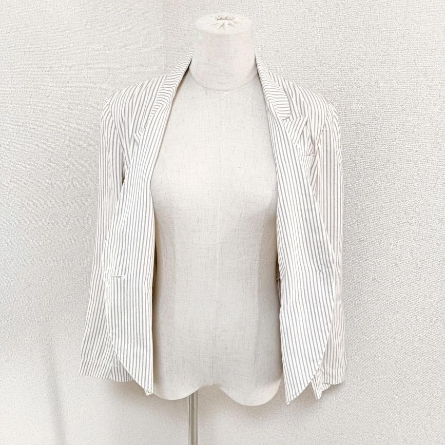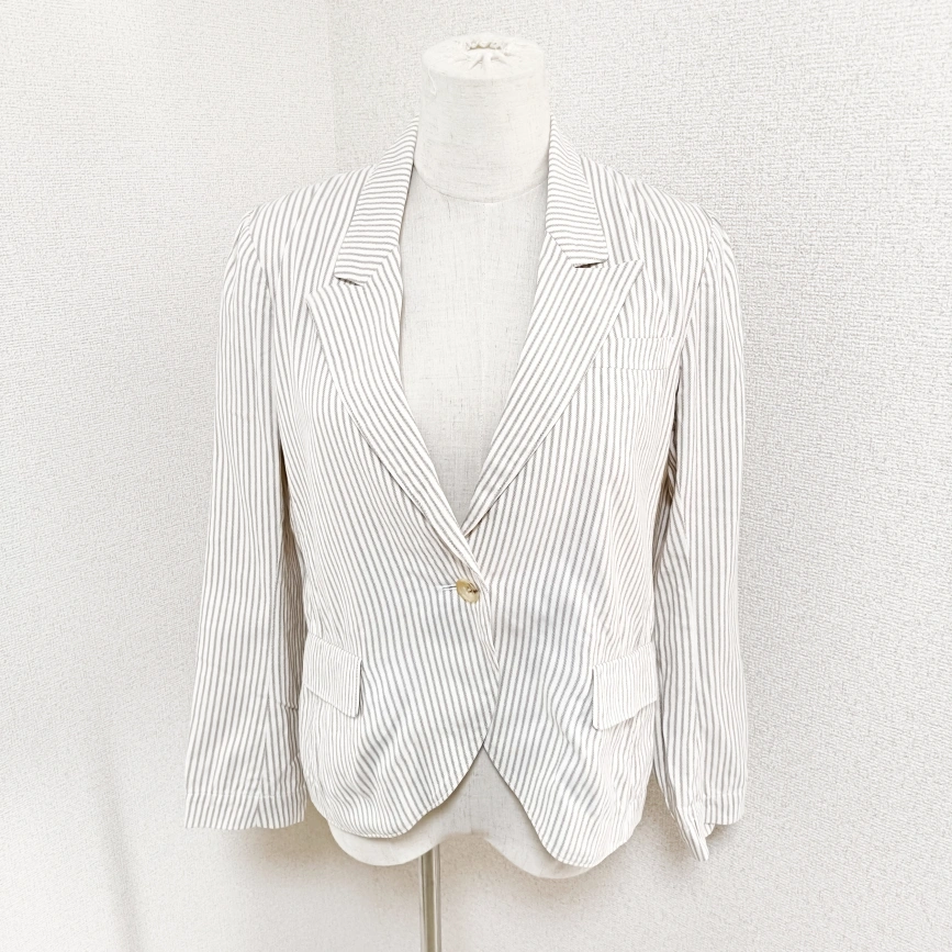 □商品名□ 美品 テーラードジャケット ブレザー アウター シングル 1つボタン ストライプ柄 ベージュブラウン 綿混 38 レディース Theory luxeの洗練されたテーラードジャケットです。 ベージュブラウンの柔らかな綿混素材に、上品なストライプ柄がアクセント。 1つボタンのシンプルなデザインで、オフィススタイルはもちろん、カジュアルなコーディネートにも合わせやすいアイテム です。 程よくゆとりがあり、リラックスして着こなせます。 #joymaxお得なプロフへ #ゆうの古着屋さん_レディースアウター □ブランド□ theory luxe セオリーリュクス □表記サイズ□ 38 Mサイズです □実寸サイズ(cm) □ 着丈:57 肩幅:38 身幅:44 袖丈:56 ※実寸につきまして多少の誤差はご了承ください。 ※表記サイズだけではなく実寸のサイズをご確認ください。 □カラー□ ベージュ×ブラウン □コンディション□ 目立った汚れやダメージなど特にございません。 ※汚れはできる限り写真にて掲載しております。まずは画像をご確認ください。 出品一覧→ #joymaxお得なプロフへ どうぞよろしくお願い致します。 □商品管理番号□ P2-M-4199